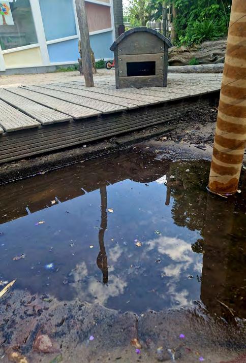 Buiten zijn meer uitdagingen, in vorm en materiaal bijvoorbeeld. Wij volwassenen, professionals zijn vergeten dat kinderen mogen vallen en nat mogen worden.