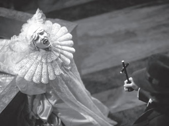 nidad en ese monstruo, mucho anhelo irresoluto de mortalidad en sus actos. Cuando Nosferatu ve a Lucy en un portarretratos de bolsillo que Jonathan Harker lleva consigo, entiende que esa mujer puede ser la sal vación para su alma en pena –“La ausencia de amor es el peor de los dolores”, le dice cuando por primera vez ve a esta mujer–. Y por eso se embarca para Wismar llevando con él la plaga y la muerte.