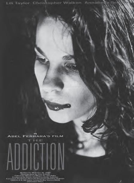 The Addiction (1995) de Abel Ferrara, descrita por mu chos como una película cargada de urgencia y ansie dad, se estrenó a solo dos meses de la premier de aque lla muy glamurosa Entrevista con el vampiro (Interview with the Vampire: The Vampire Chronicles, 1994) de Neil Jordan, y apenas dos años después de Drácula, de Bram Stoker (Bram Stoker’s Dracula) de Francis Ford Coppola.