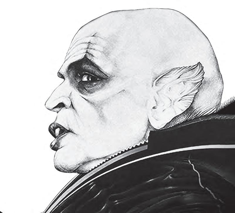 Es difícil establecer el canon fílmico del vampiro. Sin embargo, es curioso pensar que la primera gran película sobre el tema es, en sí, un vampiro cinemato gráfico. Nosferatu (1922), la obra maestra de F.W. Mur nau, es en realidad Drácula con nombres cambiados p ara no tener que pagar derechos. Es decir, “vampi riza” tanto la novela como la obra teatral derivada. Y, al mismo tiempo, manipula con efectos especiales aún efectivos lo que entonces era, sobre todo, un arte del puro registro. No podemos decir mucho del clá sico D rácula (1931) de Tod Browning que transformó en ícono y representación básica del personaje a la creación de Bela Lugosi: están todos los temas pero su teatralidad demasiado evidente (y convengamos en que Browning no era un cineasta menor: la maldita y sublime Freaks así lo comprueba) solo demuestra que el personaje sincronizó perfectamente con su épo ca, esos años de la Gran Depresión donde la debacle
