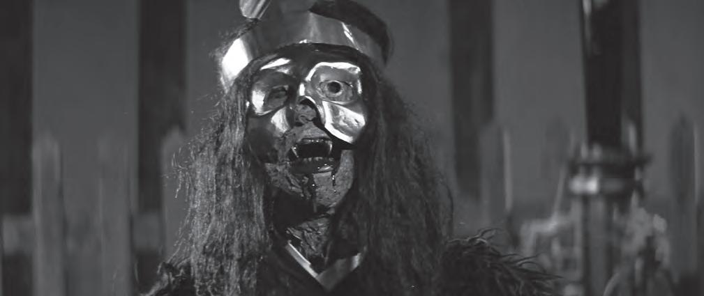 Los primeros planos van enmarcando el horror del protagonista, aquellos ojos saltones propios del cine silente contrastados con intrigantes planos medios de personajes que aparecen de repente y sueltan una frase misteriosa. Contraluz y luz picada con el dra matismo propio del teatro, sombras fuertes, efectos a nalógicos bien logrados: esqueletos cobrando vida, pesadillas en perspectiva subjetiva, desdoblamientos... Es inevitable pensar en lo ominoso1 como tropo de las imágenes, así como en obras fílmicas anteriores: en Murnau diez años antes con Nosferatu (1922), Drácula de 1931 o el legado alemán con Caligari hacia 1920.