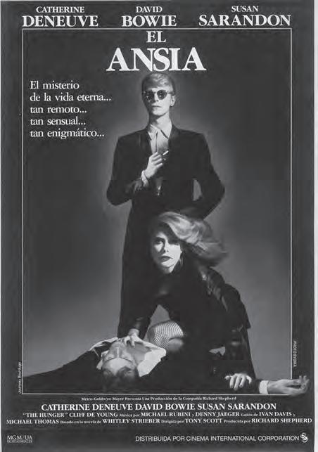 L a crítica suele perder los pulsos que hace contra la lógica del cine de culto, sobre todo porque este tiene a su favor el paso del tiempo. De El ansia (The Hunger, 1983) el prestigioso e influyente crítico Roger Ebert dijo por entonces que era “una película de vampiros atrozmente mala”, pero lo dijo midiéndolo con el rasero de la tradición del cine de vampiros y del cine comer cial del momento. No contaba con que la cinta tenía u na serie de componentes que –tanto por el barniz que les confiere el tiempo como por la horda de ciné filos afectos a películas tal vez imperfectas pero llenas de secretos placeres– podían convertirla en una obra muy estimada por la posteridad.