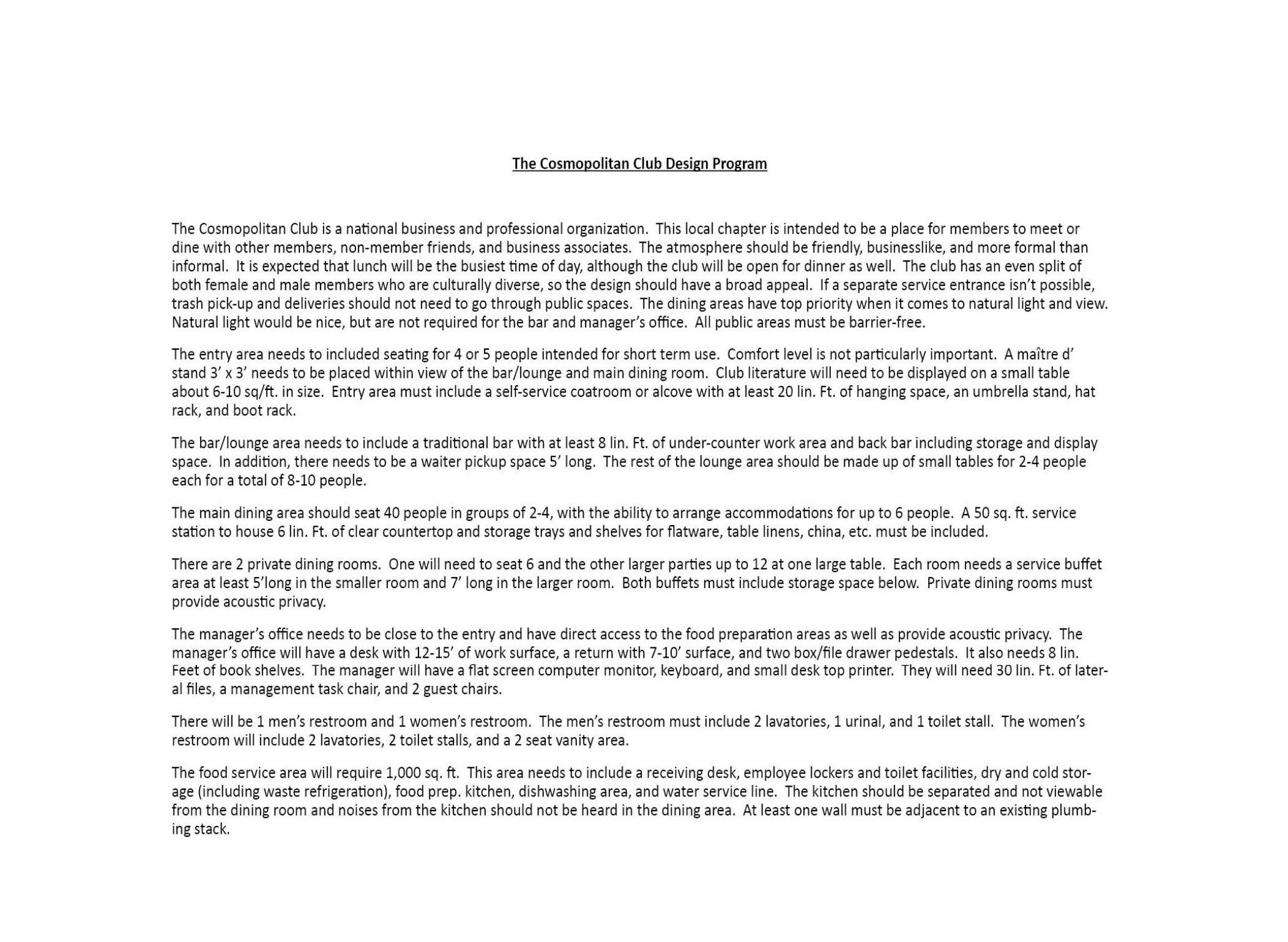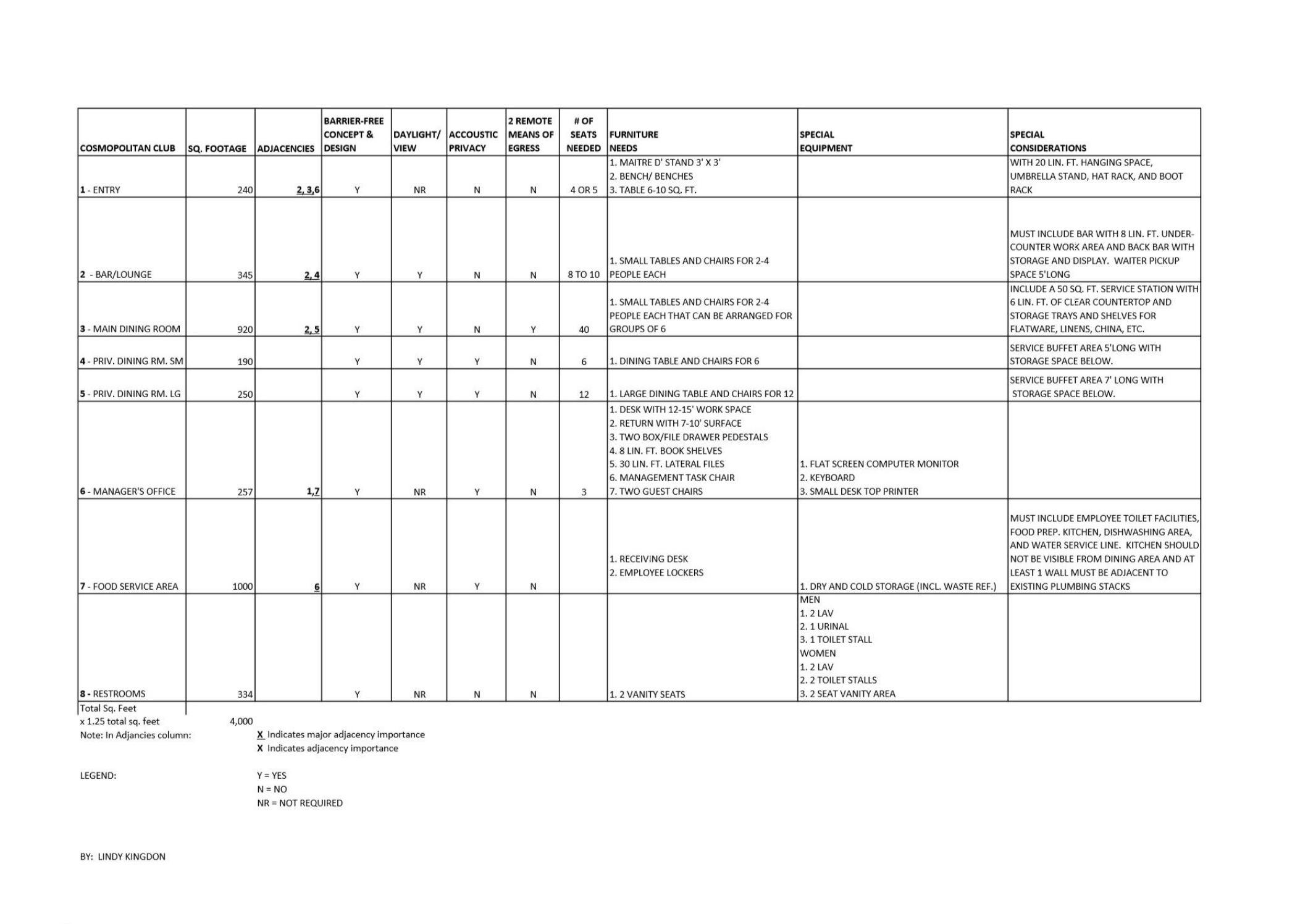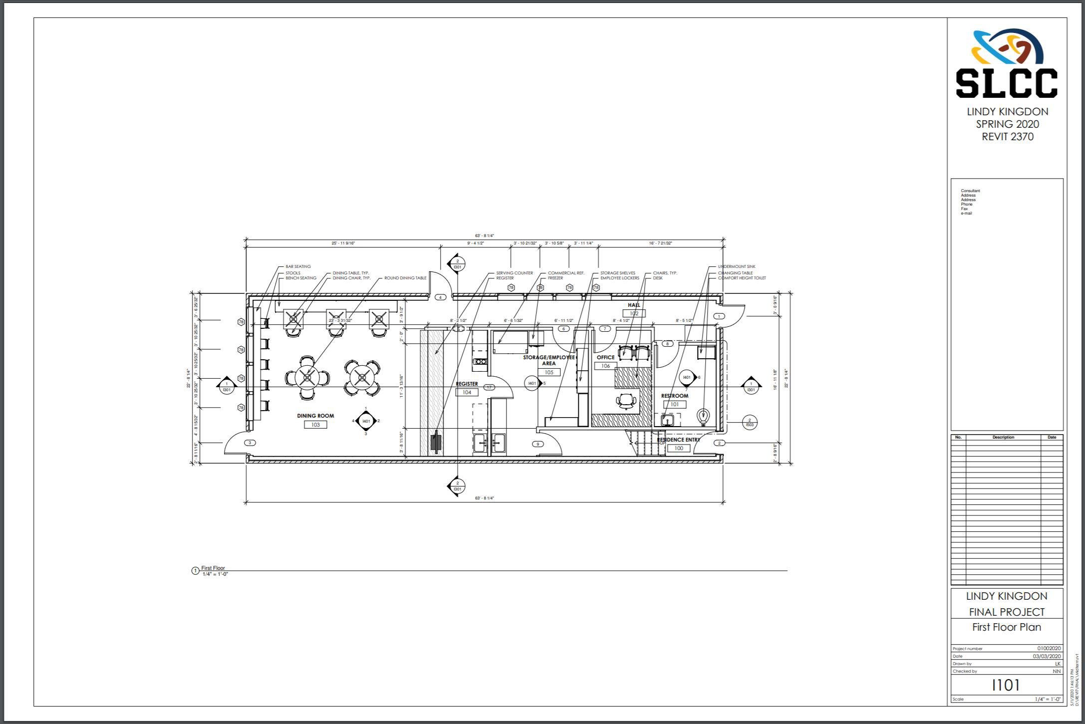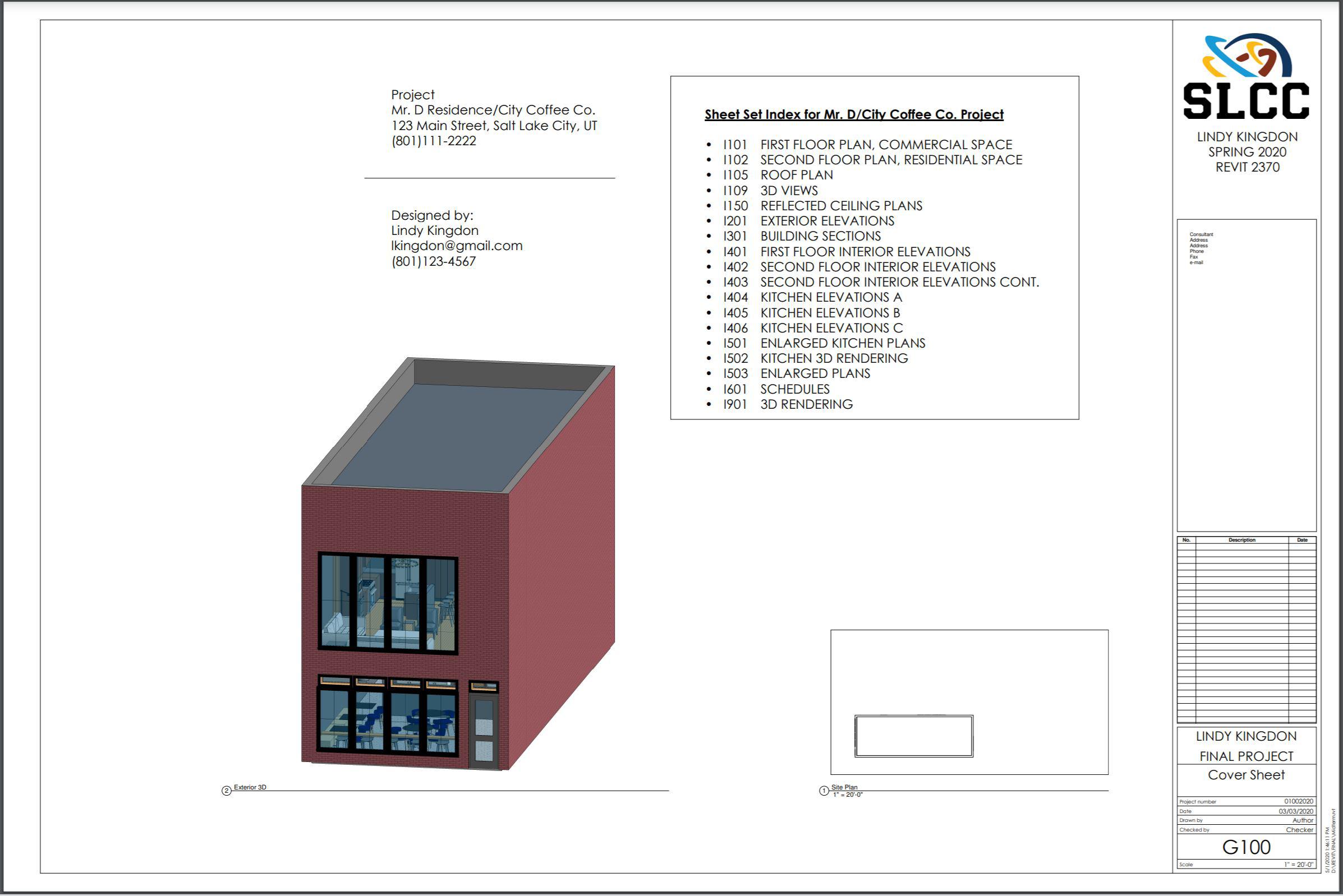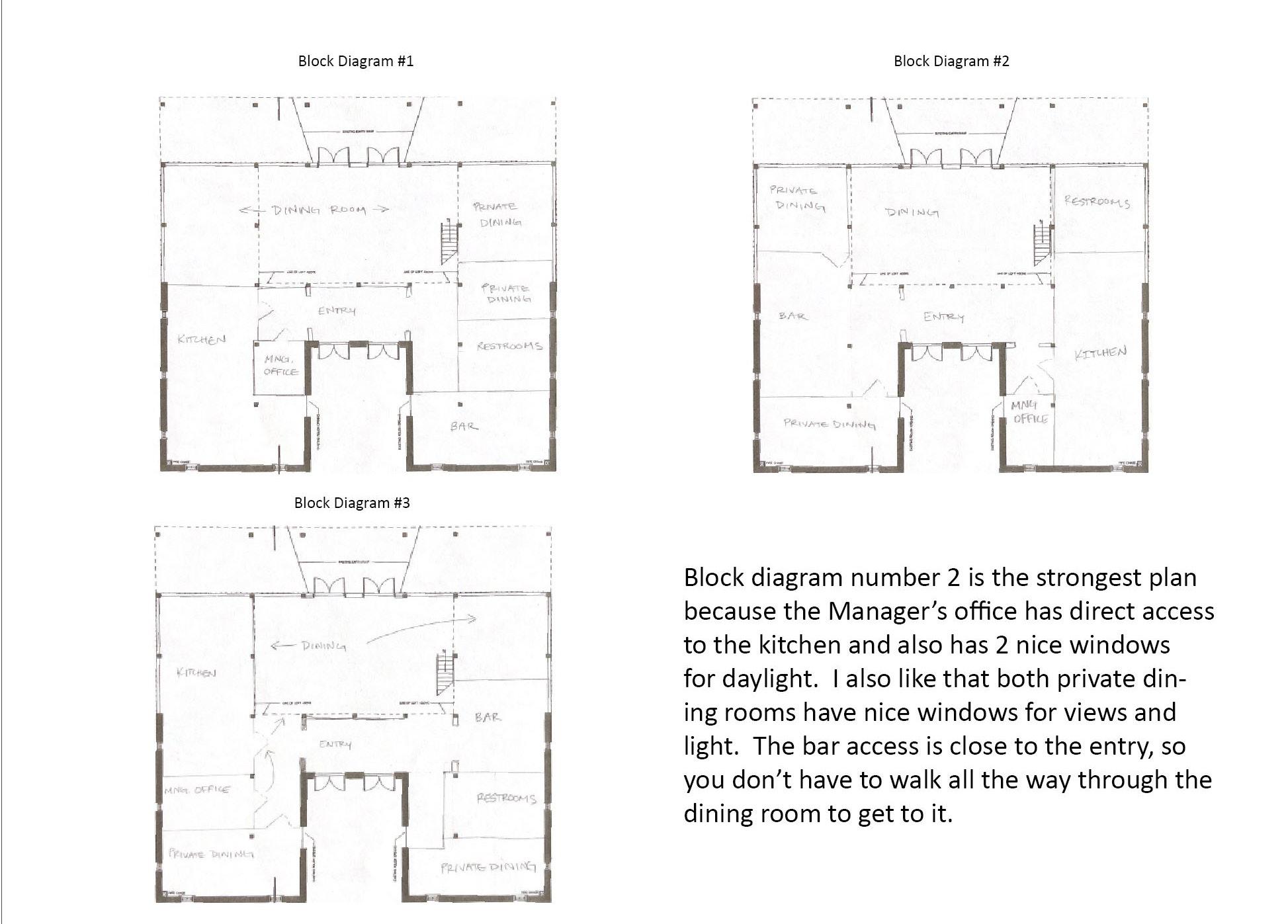 My commercial space is a coffee shop. We were to include emergency exits, accessible restrooms, and a private office. I added outdoor seating as well.