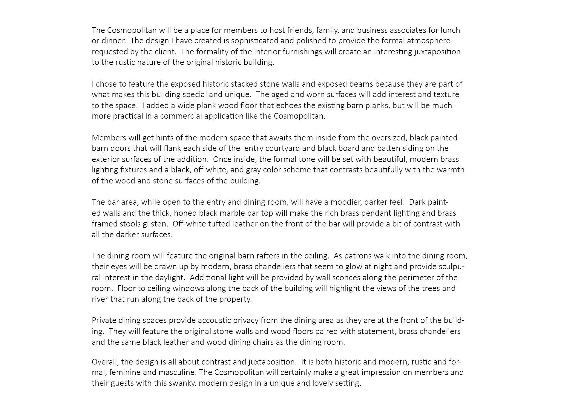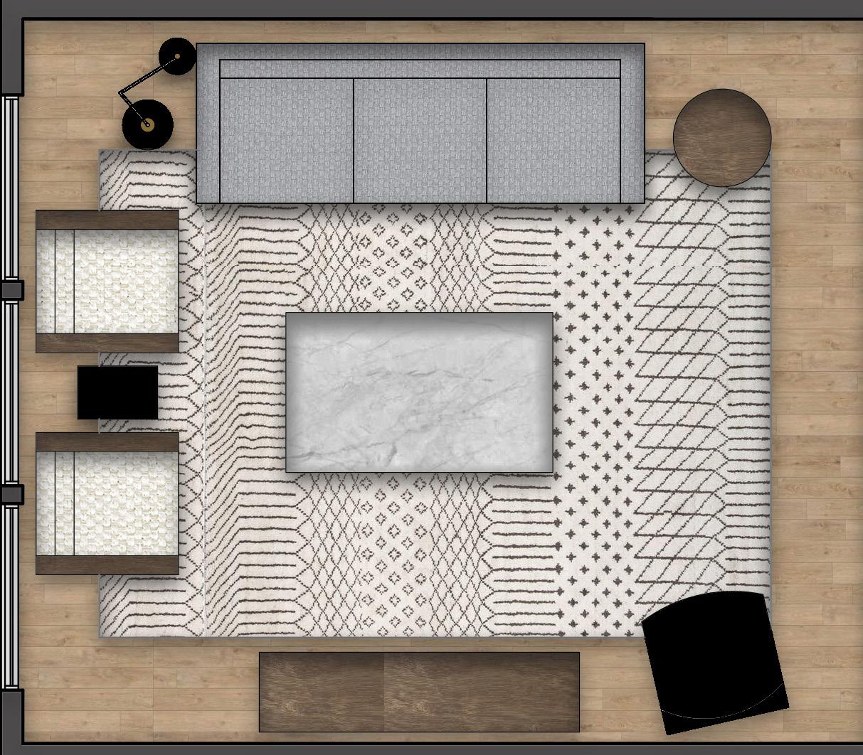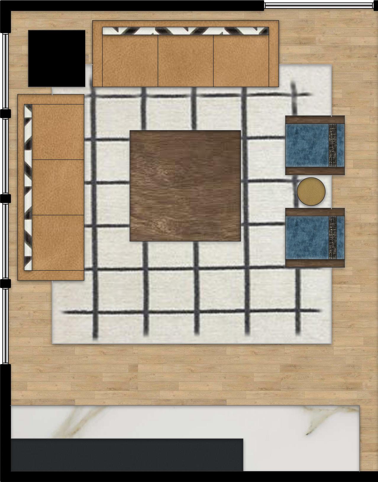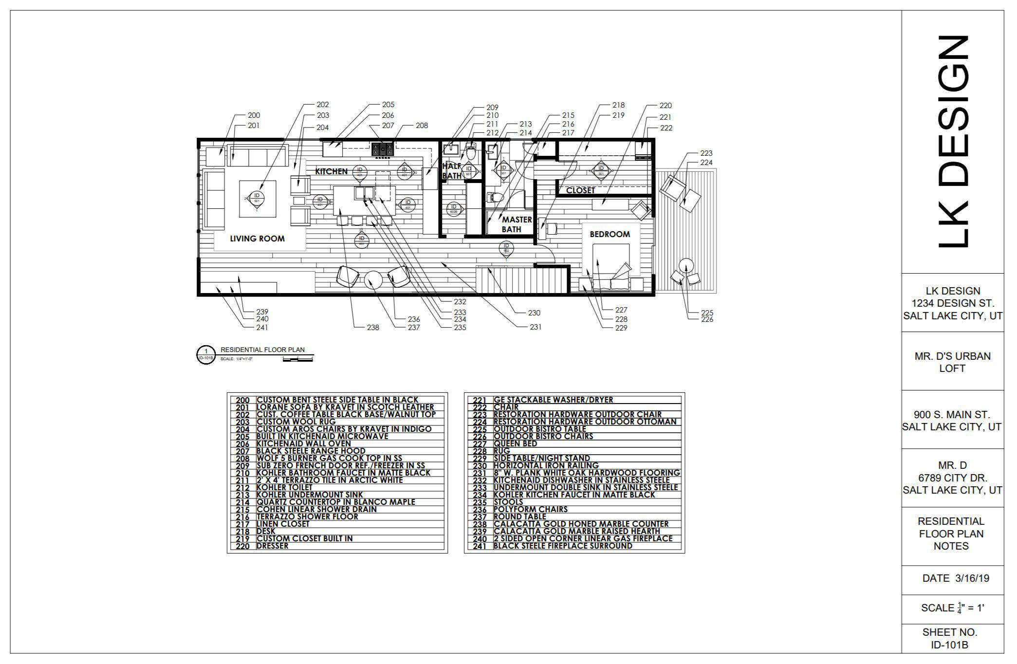 The residence was created for a fictitious client to meet his requirements. My client was a single man in his 30’s who loves modern design, collects art, and loves to host small catered parties. He wanted an urban show piece. I wanted to have an impactful entry, which was tricky because the entry is right into a narrow stair case. I focused on the first impression at the top of the stairs by including 14 ft. ceilings, a full wall of windows and a stunning black steel and marble fireplace in the living room.