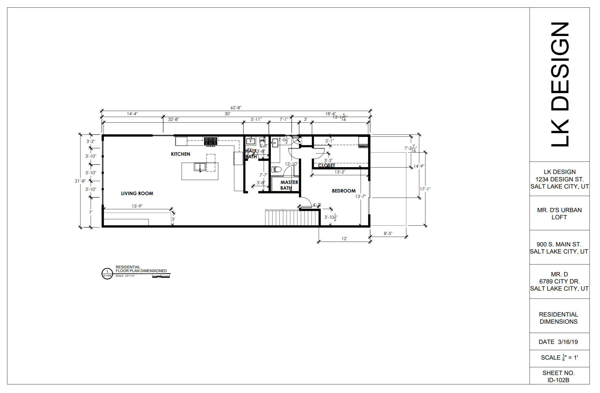 For this project, we further developed the space that we designed in our hand drafting class. We were given the footprint of the building including the location of the stairs. The first floor was to be a commercial space and the second floor a residence.