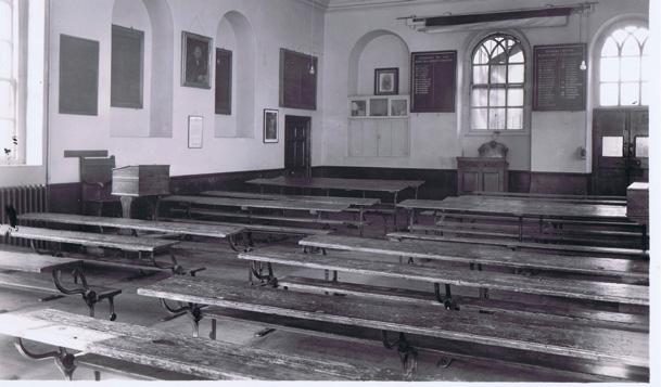 But this was later – I must return to ‘the beginning’. I knew not a word of French or Latin and soon encountered the first conundrum in a bewildering day. ‘Pop’ Willett led the way to Big School and seated the ‘First Years’ on the front desks. He left us in the care of Prefects – Head Boy was C R Chandler – and returned to the front hall, where he joined the waiting procession of masters. They soon entered Big School, gowns swirling, some getting caught on the vintage 1754 desks. There were prayers by HMP then Chandler rose and went to the lectern. He called the register at break-neck speed and shouts of ‘Adsum’ echoed around Big School. Believing that the responses were the word ‘Absent’, I thought to myself: ‘It would be a bit of a squash if everybody was here!’