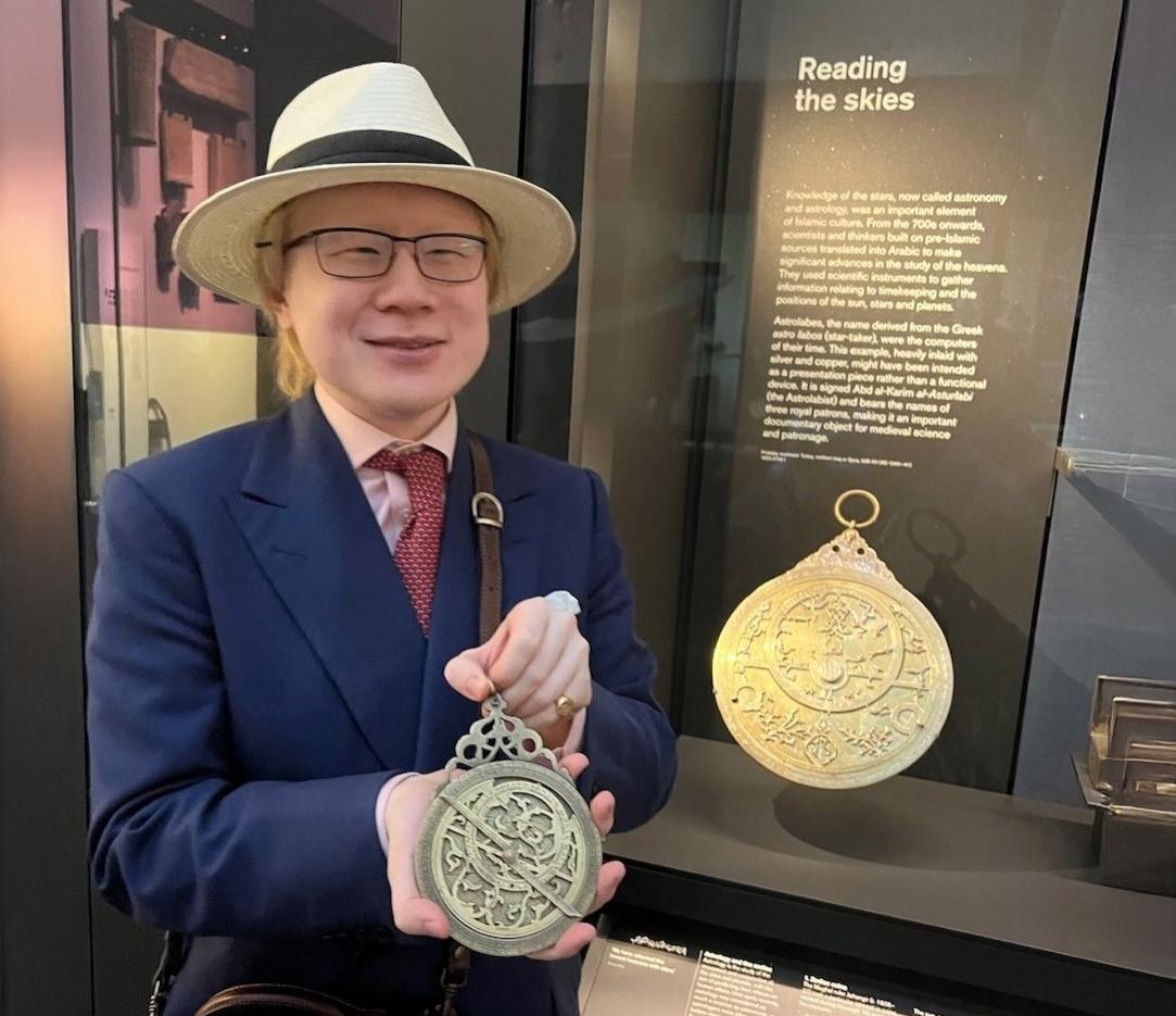 On top of his day job as a credit director in fund finance, he has been volunteering at the British Museum since 2023 and fulfils his love of history by delivering gallery tours on Mesopotamia, the Islamic World and Egyptian Sculpture. He is pictured showing visitors how to use an astrolabe, the medieval equivalent of a smartphone, used for navigation, divination, praying towards Mecca and hitting enemy forts with a cannon, amongst many other things!