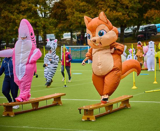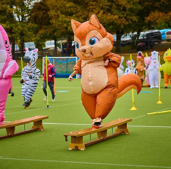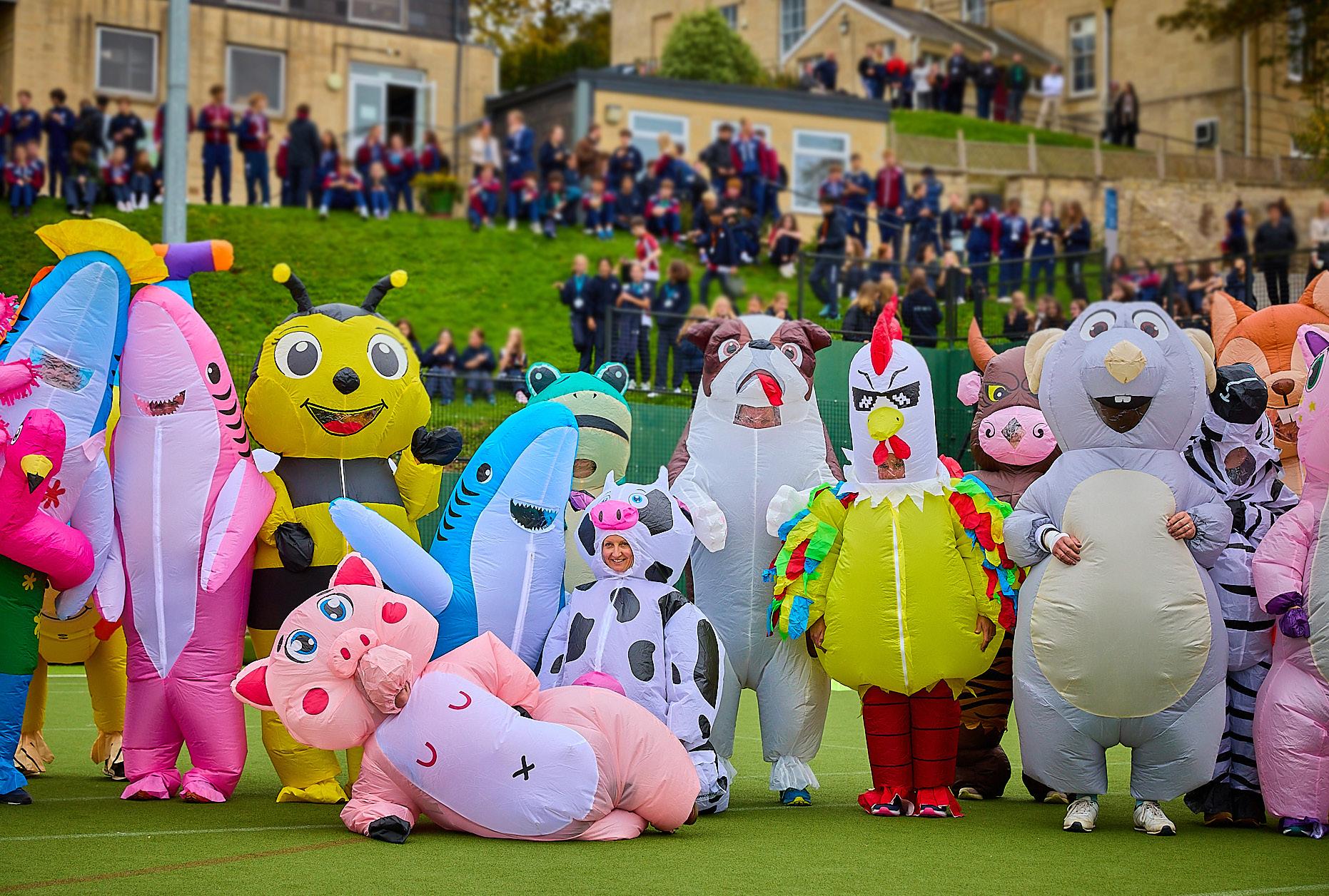 At the Senior School, pupils created beautiful Tudor roses as part of a collaborative art project that will be showcased on the School grounds. They also faced off against the Headmaster in an exciting Penalty Shootout Challenge. The festivities peaked with a hilarious ‘It’s a Knockout’ race featuring staff members in inflatable animal costumes and culminating in a surprise Masked Singerinspired reveal at the end.