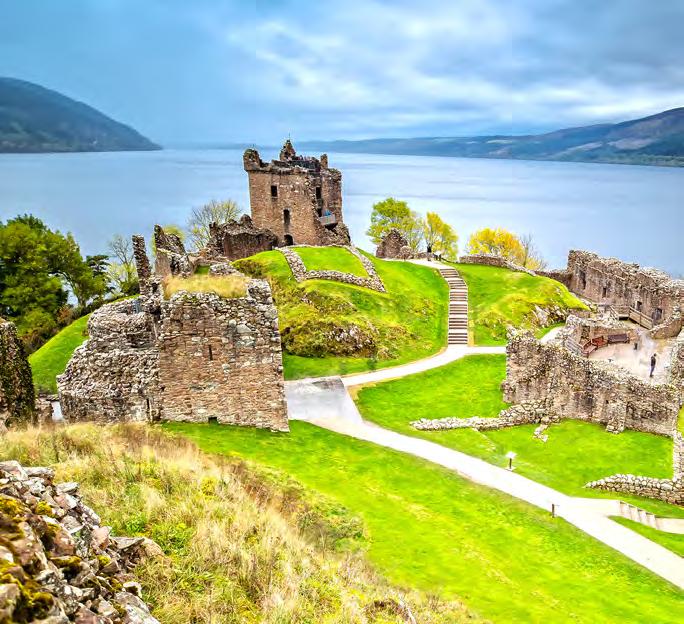 ruins to be found in this region. You can’t visit Loch Ness without a trip to the majestic Urquhart Castle, one of Scotland’s most iconic and dramatic ruins. Climb to the top of Grant Tower for breathtaking loch views, and see if you can spot Nessie, the Loch Ness monster. Discover the prison cell and check out the great hall where magnificent banquets took place. With 1,000 years of history on display via a short film and artefacts, you’ll get a taste of medieval life surrounded by natural beauty. There’s an excellent visitor centre and café too, so you don’t have to leave to get a bite to eat on your trip through history.