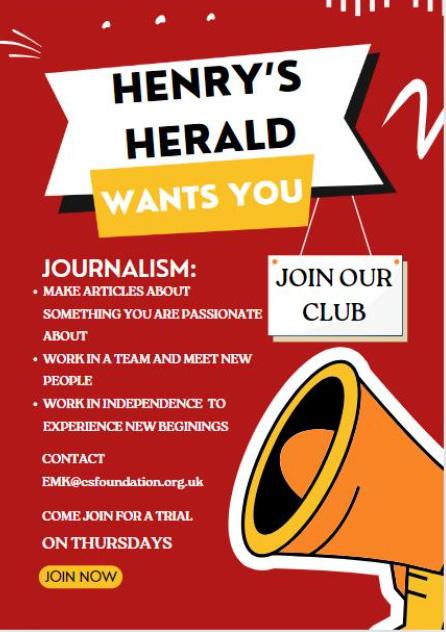 Dear Readers, if you are curious about this project, I will introduce you to it from the very beginning. So, let us start by conversing about our members! I am the editor who will be leaving comments on our Newspaper, Henry’s Herald. Our members consist of mainly Year 9s, but we do have one member in Year 8. Now allow me to introduce you to our members: