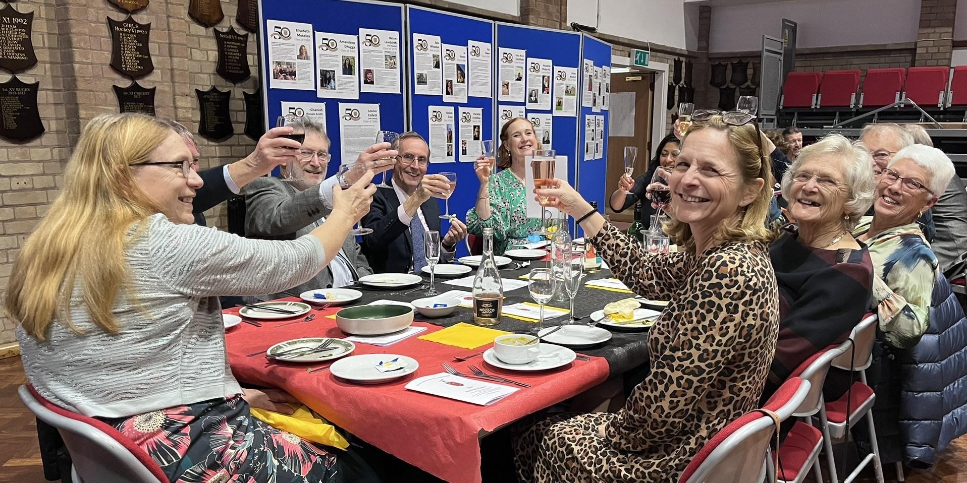 We began on 13 September with a special exhibition in Burgess Hall. The room was alive with memorabilia: pamphlets and programmes from school plays and musicals; team photographs and medals; school ties and uniform through the decades; and artwork that reminded us how creativity has always run through Henry’s. Among the most moving were the reminiscences from teacherssome still serving on the Alumni Committee. Their memories brought those first moments of co‑education vividly to life.