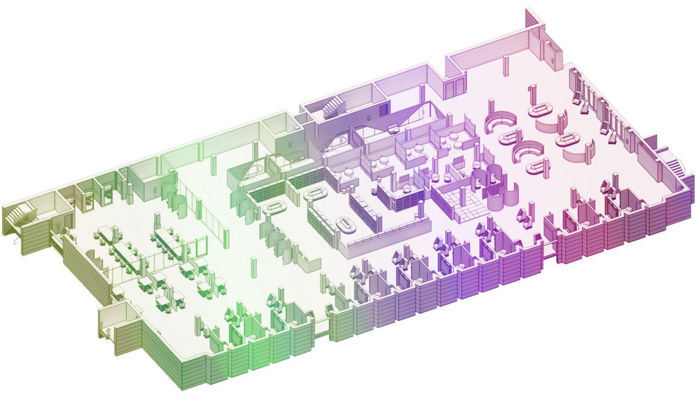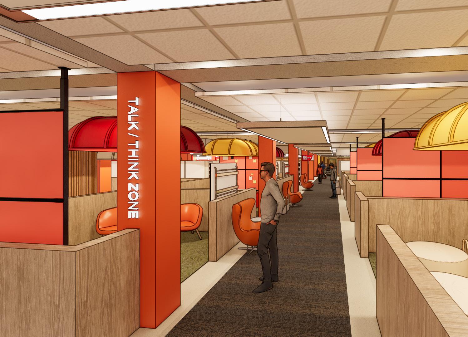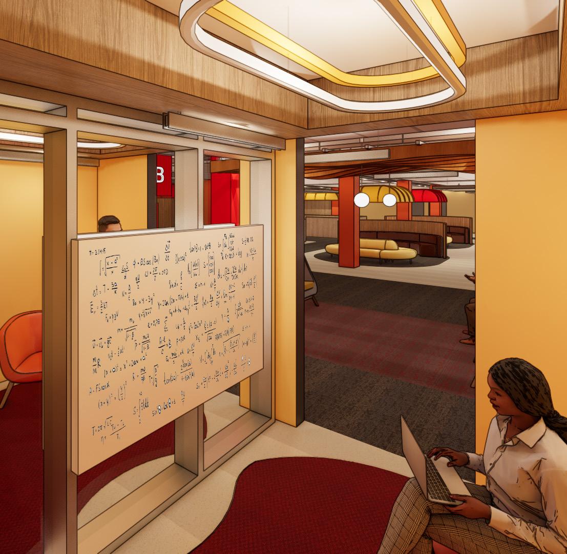 Once students and faculty enter the new and improved Parks Library, they will be welcomed by a stimulating environment that encourages a productive mindset. Accommodation of needs will be met by embraces versatility through design solutions targeting lighting, acoustic, and comfort control. Designing a flexible space will encourage students and faculty to come together to collaborate, work, lounge, and so much more.