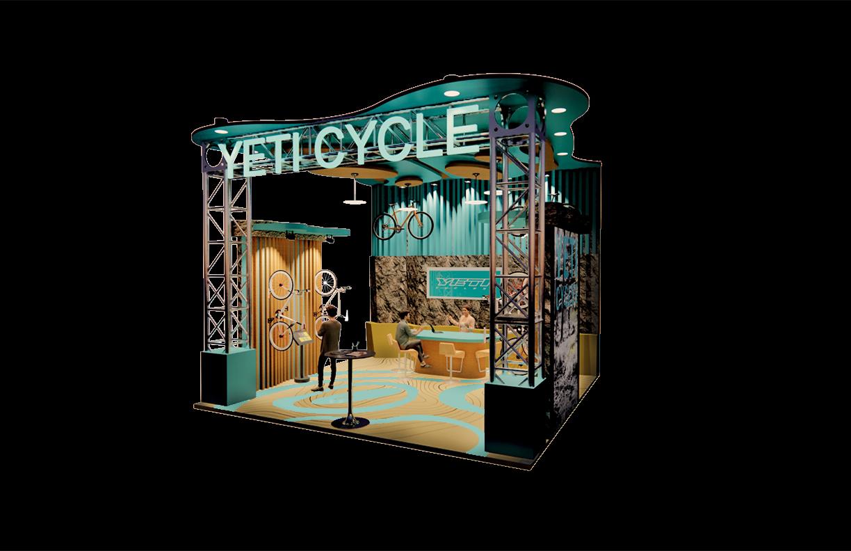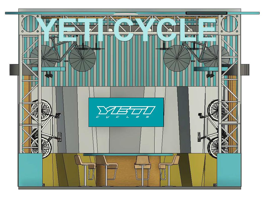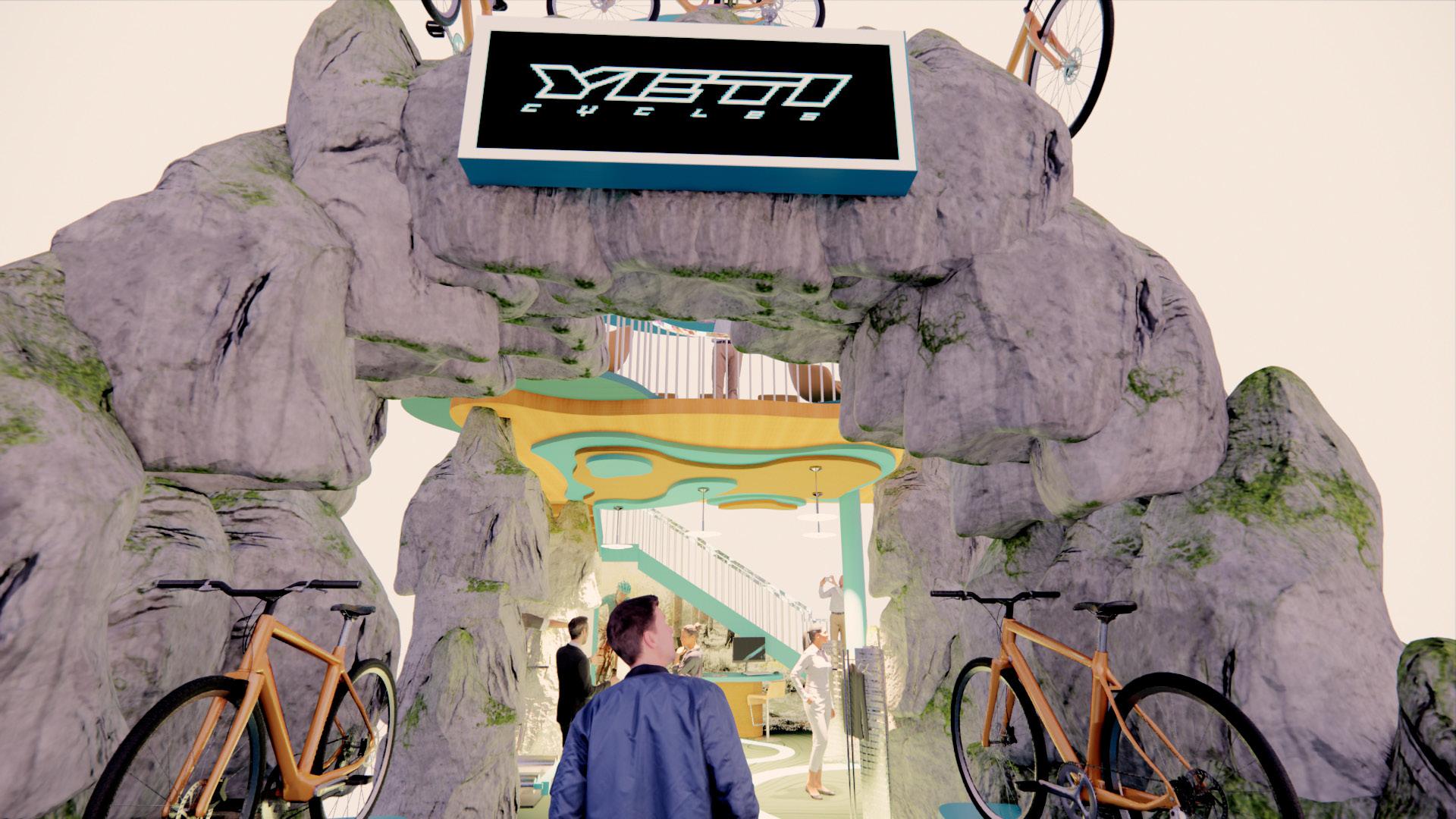 The Yeti cycle booth will have an immersive environment where guests can experience the atmosphere of cycling. This will be done by taking inspiration from mountain terrain and topography and applying it to our circulation patterns and displays.