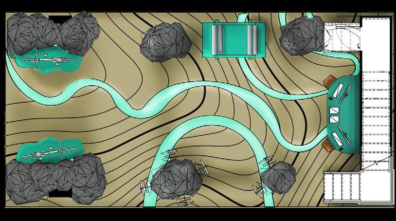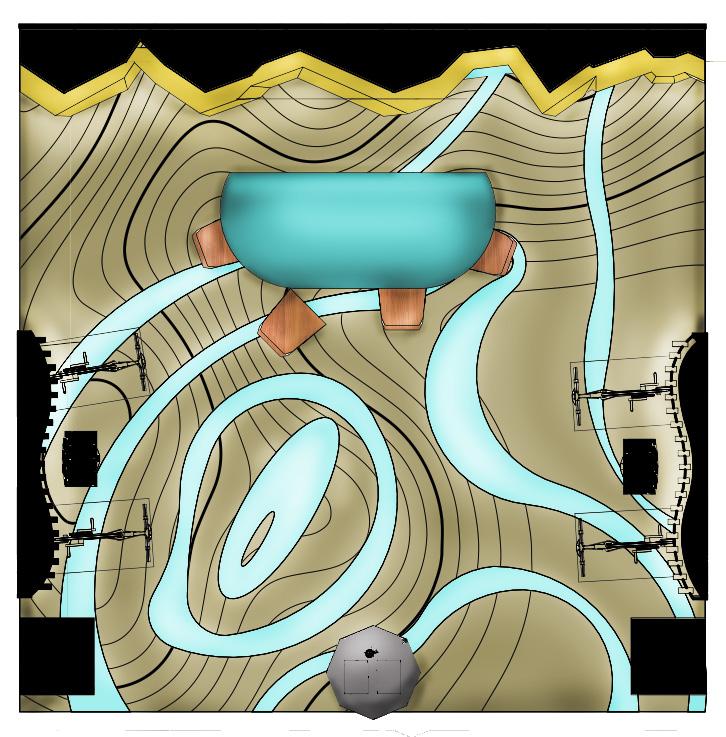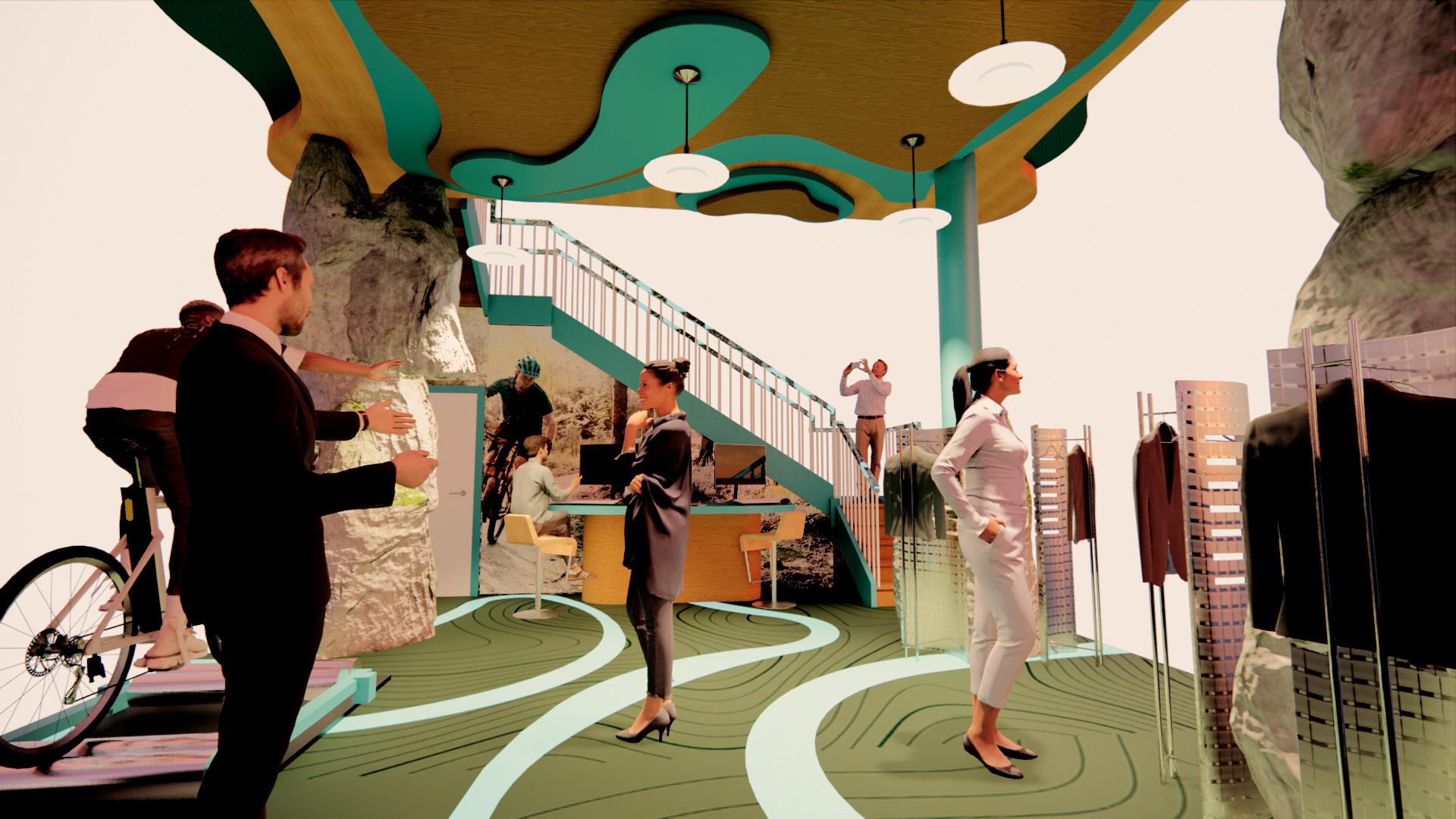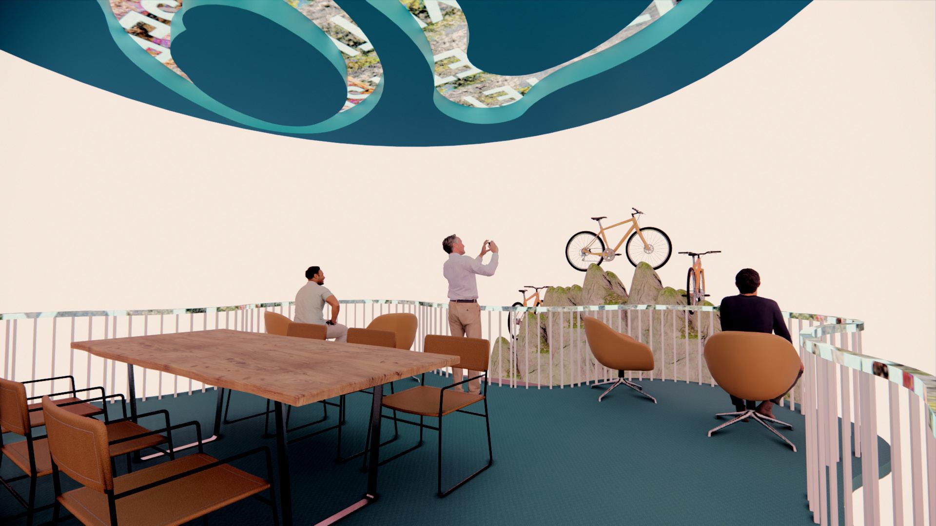 The Yeti cycle booth will have an immersive environment where guests can experience the atmosphere of cycling. This will be done by taking inspiration from mountain terrain and topography and applying it to our circulation patterns and displays.