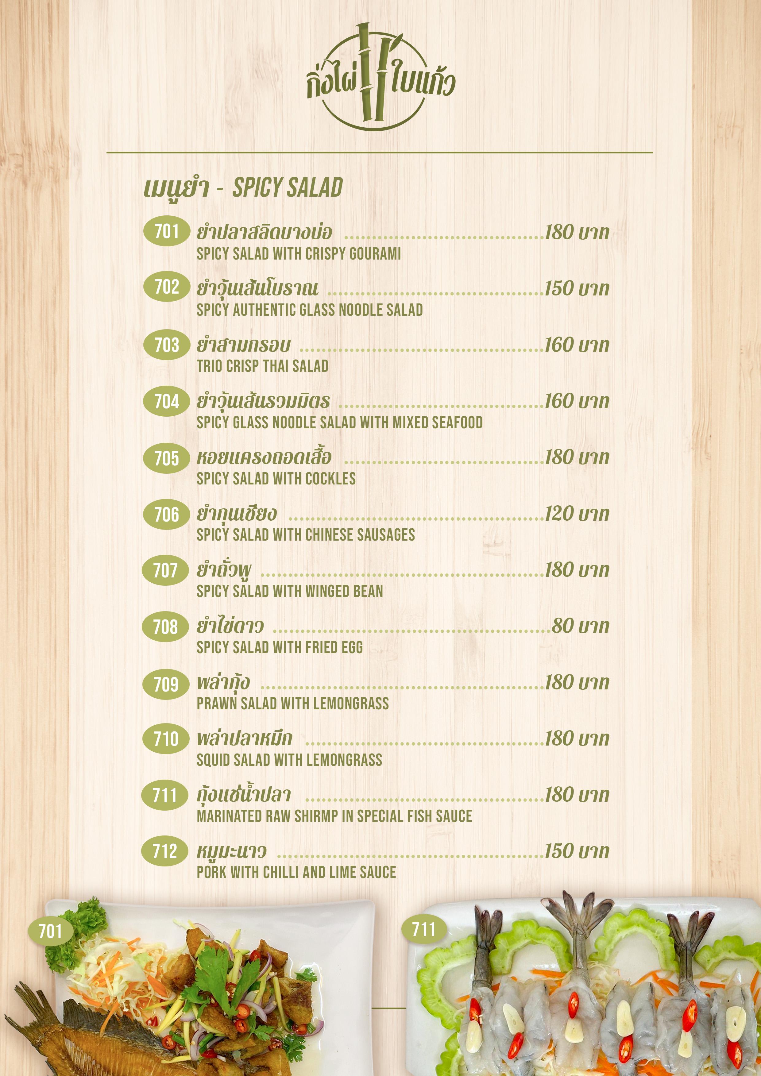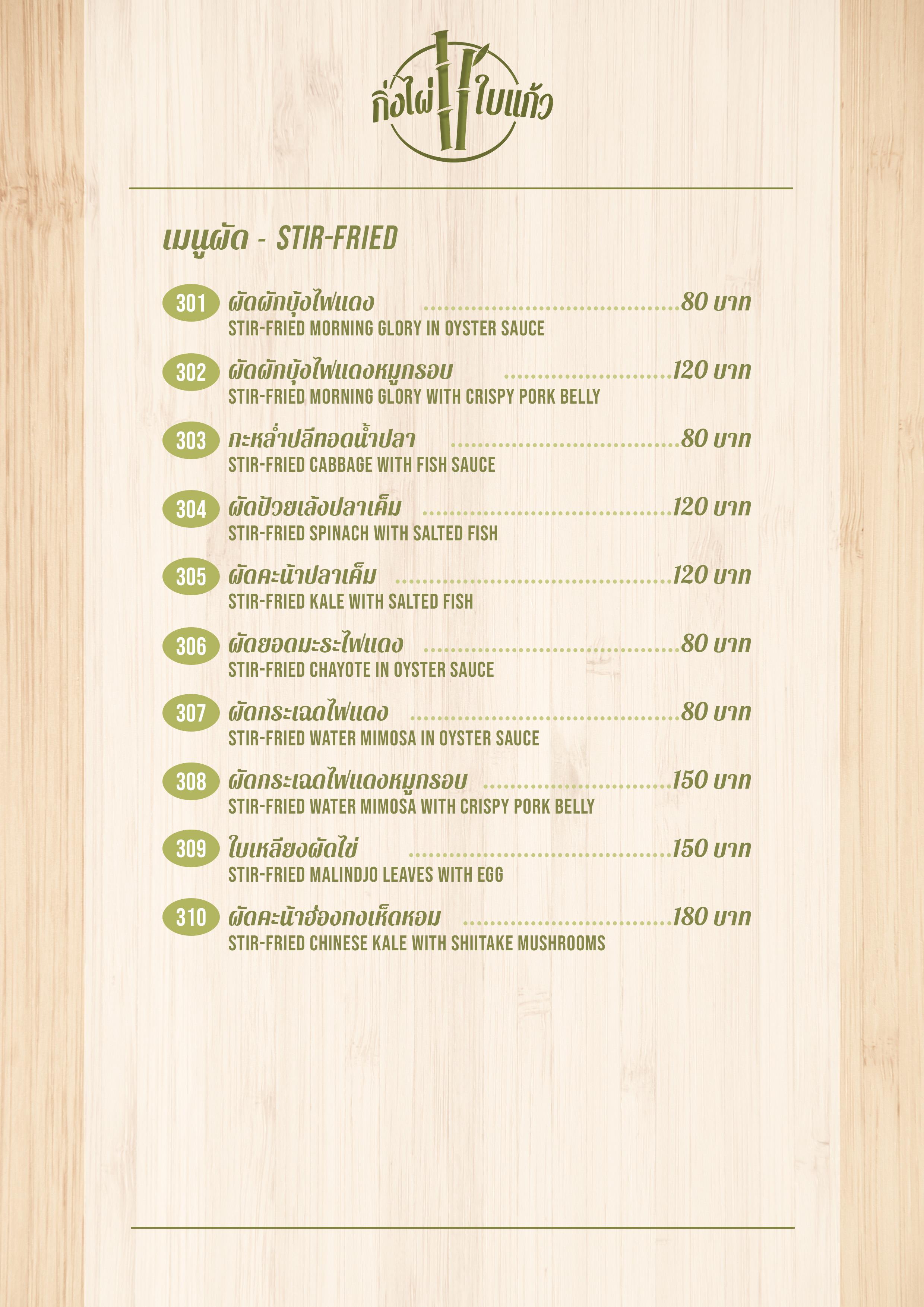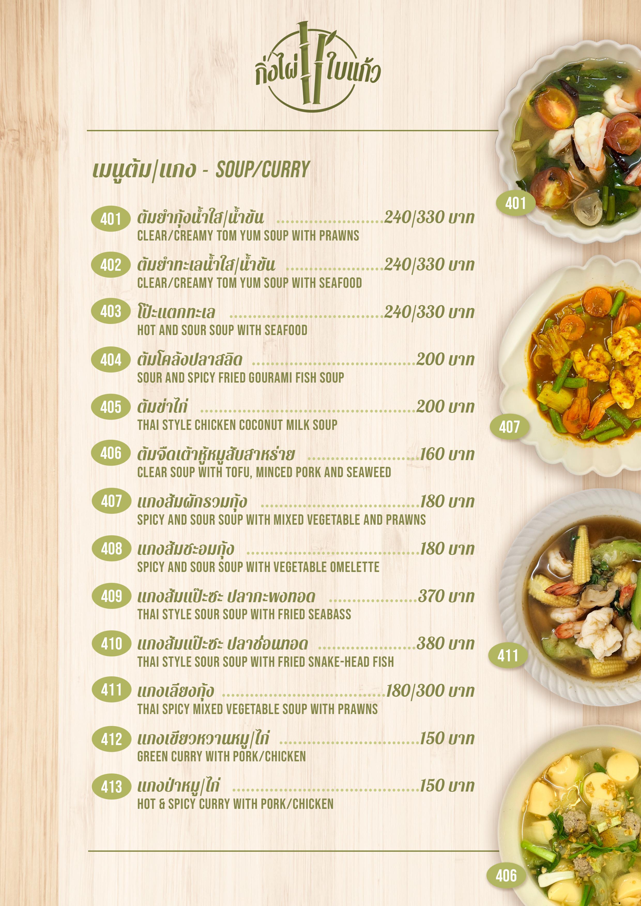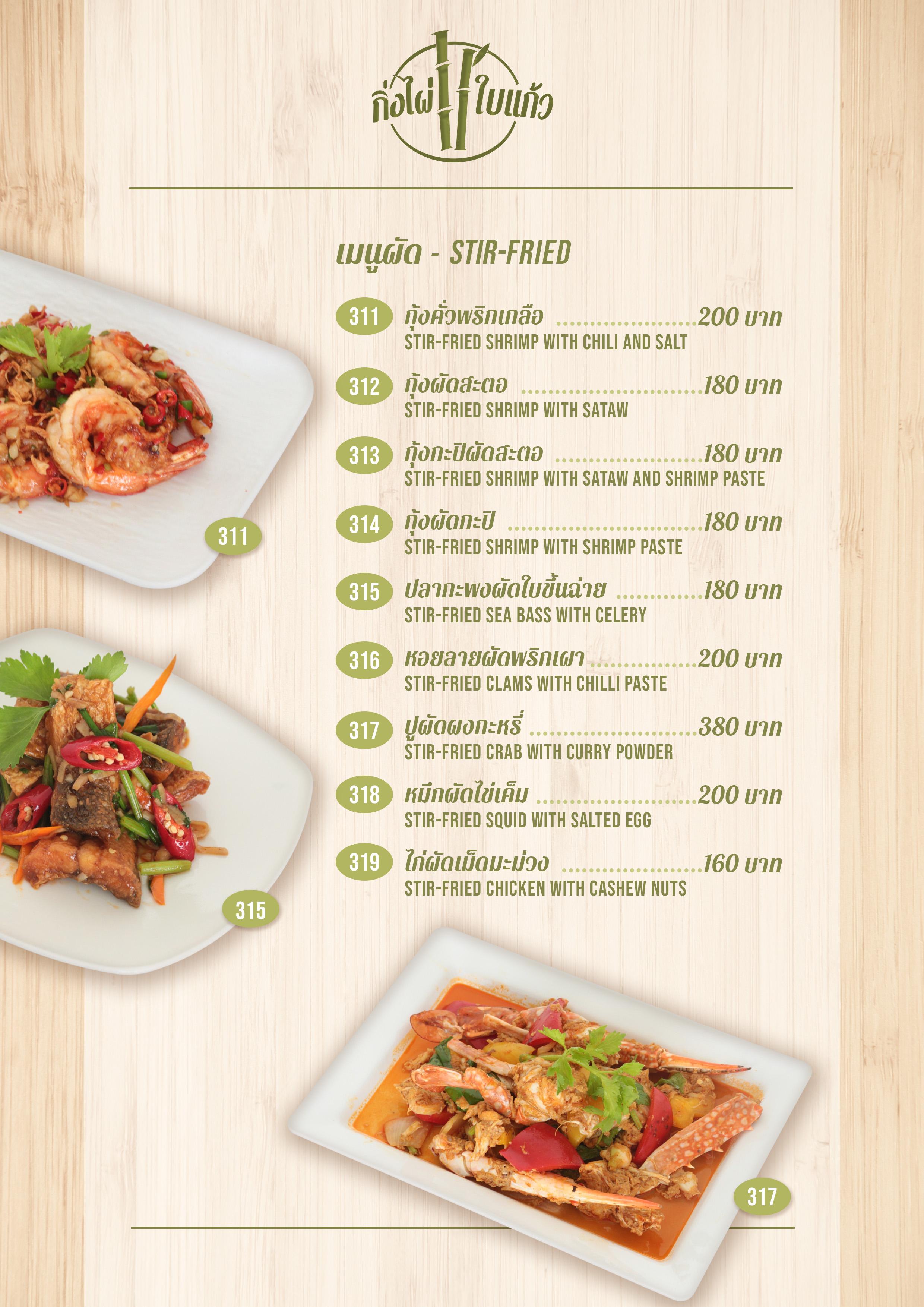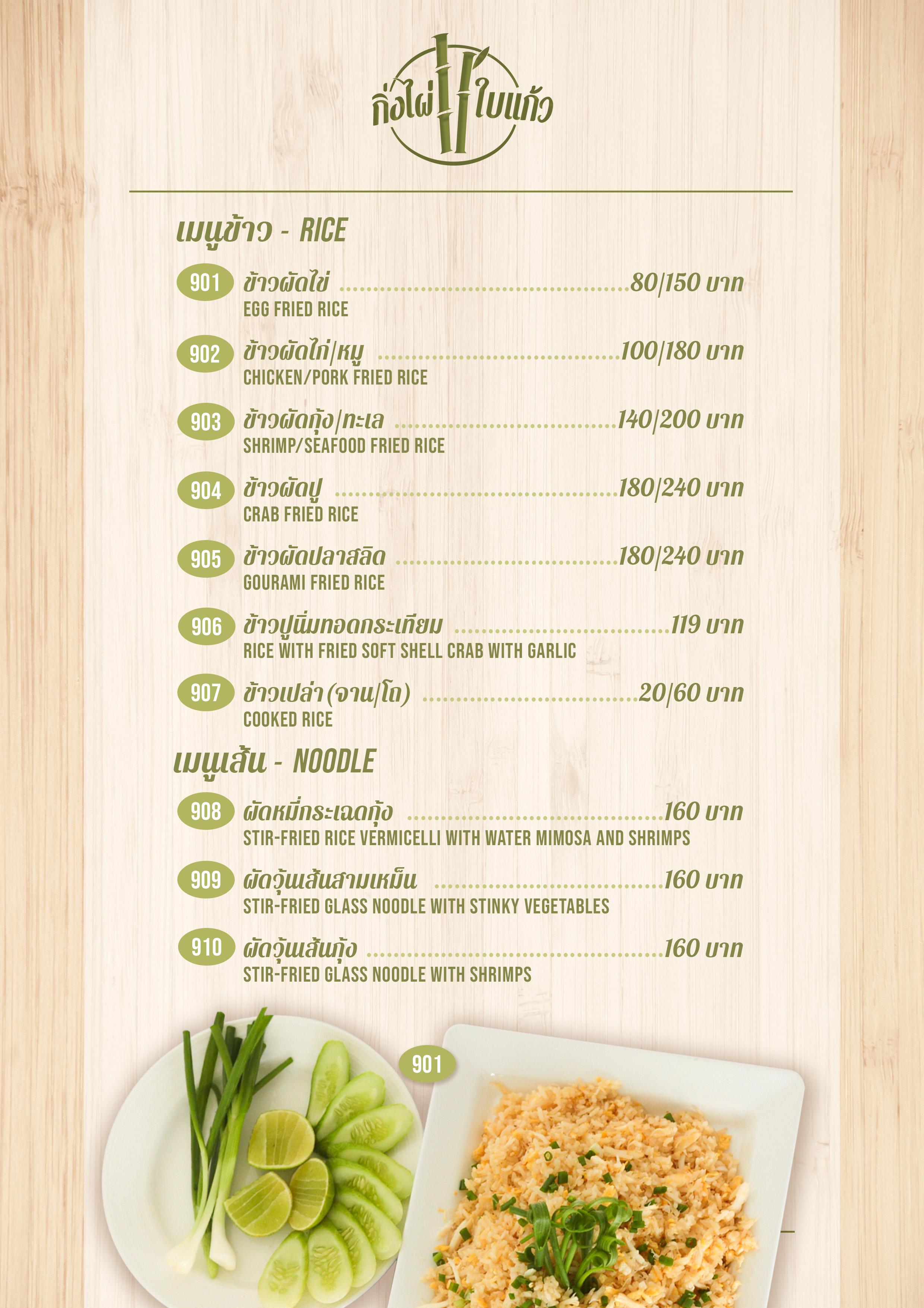 Menu ร้านกิ่งไผ่ ใบแก้ว