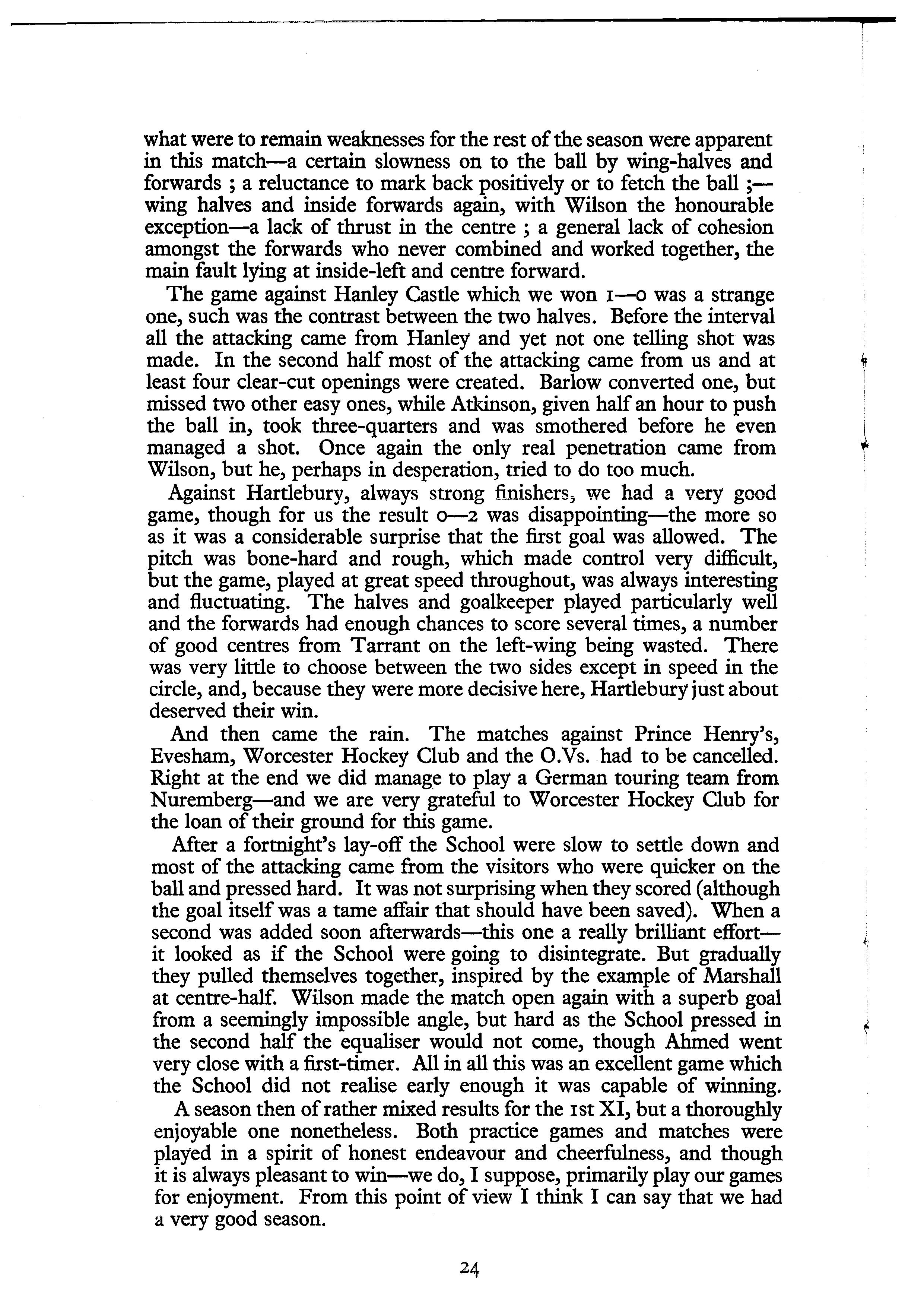 Off the field we enjoyed a most successful Club dinner, and a varied number of other social events. The Pavilion extension fund is growing slowly and we hope that a start may be made to the building next spring.