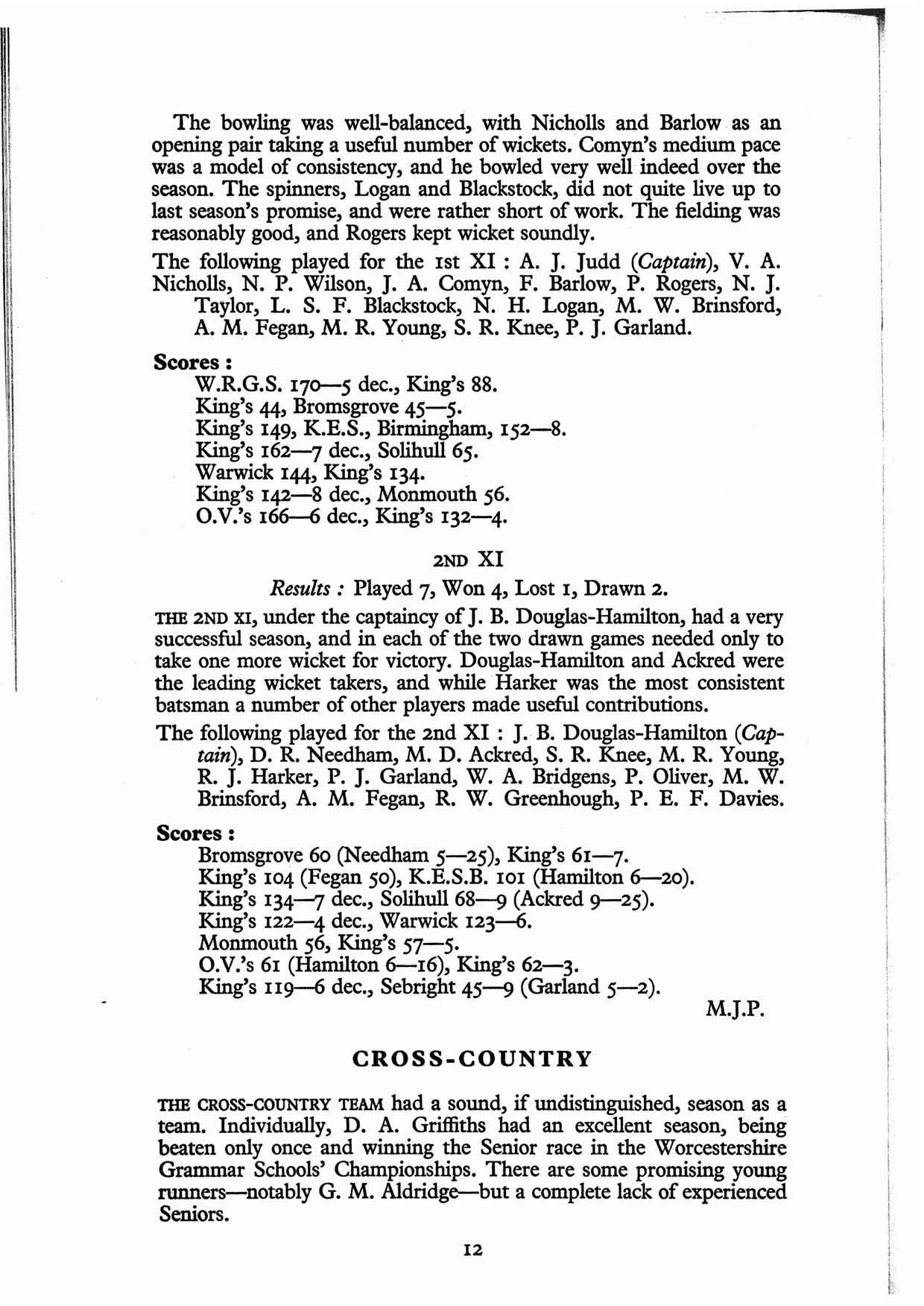 To conclude these.notes we wish to emphasise that all Old Vigornians are most welcome to join the Cricket Club. We have access to the finest cricket amenities in Worcester, and moreover a large number of social events are arranged, in addition to a very complete list of fixtures,many of the games being played in ideal surroundings.