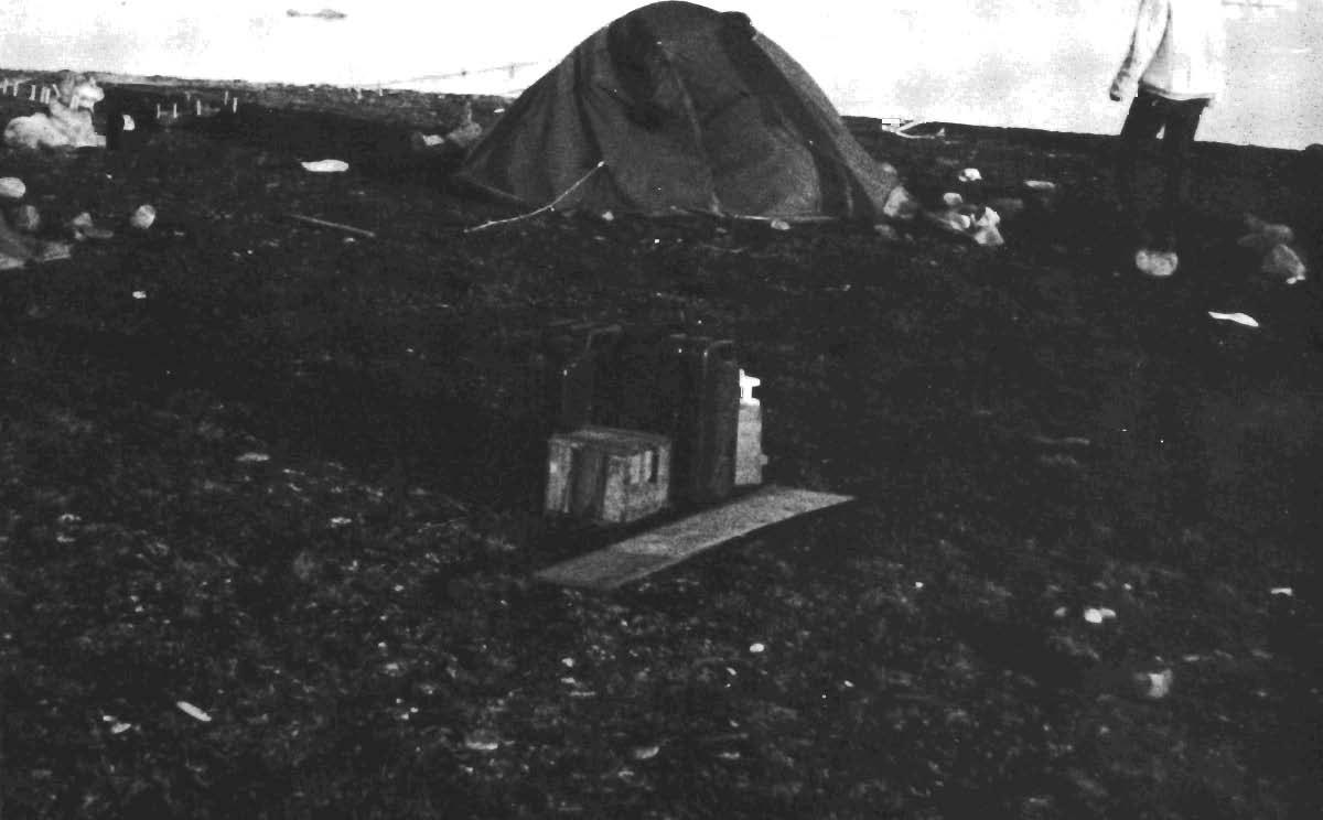 After waking to the smell of bacon, sausages and black pud frying in grassy fat we rose, ate, cleared up the debris and started on our seemingly endless journey on the long and winding road. The welcomed end was a huge anticlimax when we discovered the mountain we had to climb ('Gully' had enough trouble tackling the mole infested field previously). Thereafter we discovered no-mans-land for about five miles before reaching an almost civilized quarry road