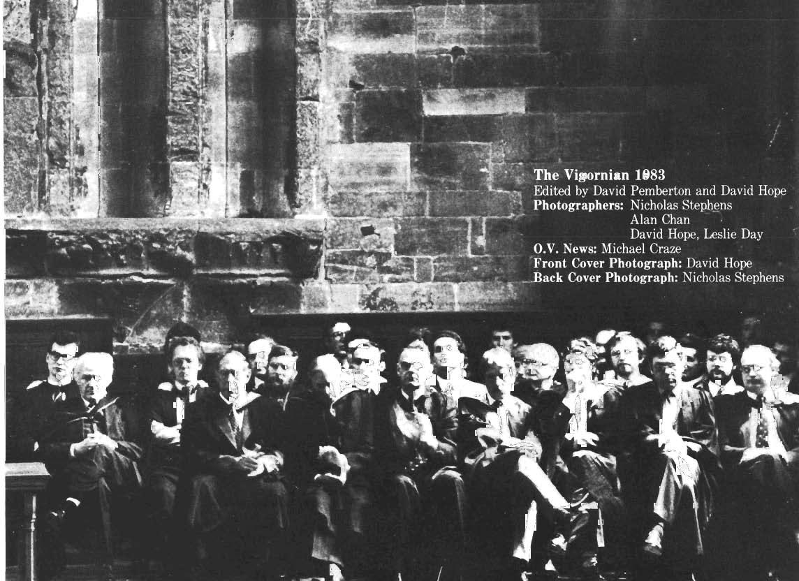 Five Vigornians gained First Classes in 1983 and all five were at Cambridge. Among the freshmen D.S. Forrester (Queens') gained a First and D.A. Rogers (St John's) a Second in Natural Sciences, while M.G. Mitchard (Trinity) gained a First in Mathematics. In a longer list of second year men S.R. Young gained a First and R. Sabey (Caius) an Upper Second in Computers. S. Kings and J.M. Nott (both St John's) had Upper Seconds in Music, A.J.P. Sandison (Jesus) an Upper Second in Medical Sciences, Lorna Mackinnon (New Hall) an Upper Second in Natural Sciences and M.W. Townley (Christ's) an Upper Second in Geography. Lower Seconds went to J.M.T. Davies (St John's) in English, P.M. Renny (Trinity) in Law and M.J. Ahmed (St John's) in Engineering.