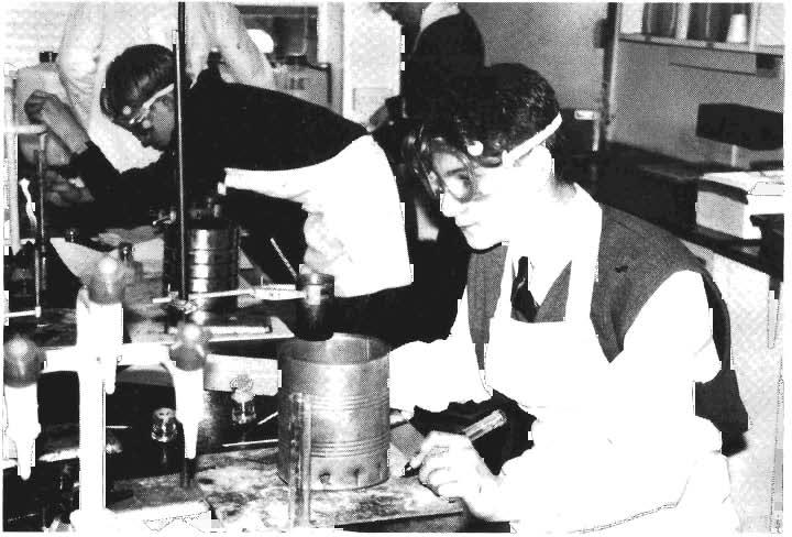 Trevor's backgro~lnci.lie hat1 run liis own cycle-repair shop as well as working~~tMalvern's Royal SignalsandR~ldarEstablisli~nent. meant he brought with him ~~selillexperience and skills. However. it was liis great ingenuity coilpled with a refitsal to lx Ixatcn by any pr~~cticalprobleri~that made him s~lch21 ilsefill colleague. 111clays when tlie School's finances were vety tight indeed. it was tl~roi~gli liis efforts that we were able to embu-k on the appari~t~ls-intensive Nufiieli 0 level and A level courses. Even at the beginning of'the '70s he saved 11stliousand of pountls.