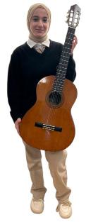 For Tala AlDeheisat ’28, it is her first year learning the guitar. Tala is in Ms. Tania Banna’s guitar class.Even though she’s still new to the instrument, she already loves it and enjoys pushing herself. One of her favorite pieces to play is “Kan Ena Tahoon” because she loves the fast finger movements and the rhythm that comes with it.