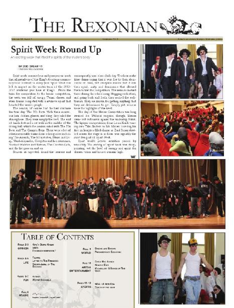 We hope you enjoy the mix of stories, art, and opinions that make the Rexonian what it is: a little whimsical, a lot pas- sionate, and entirely student-made with a sprinkle of Mr. Jeromel’s undying enthusiasm.