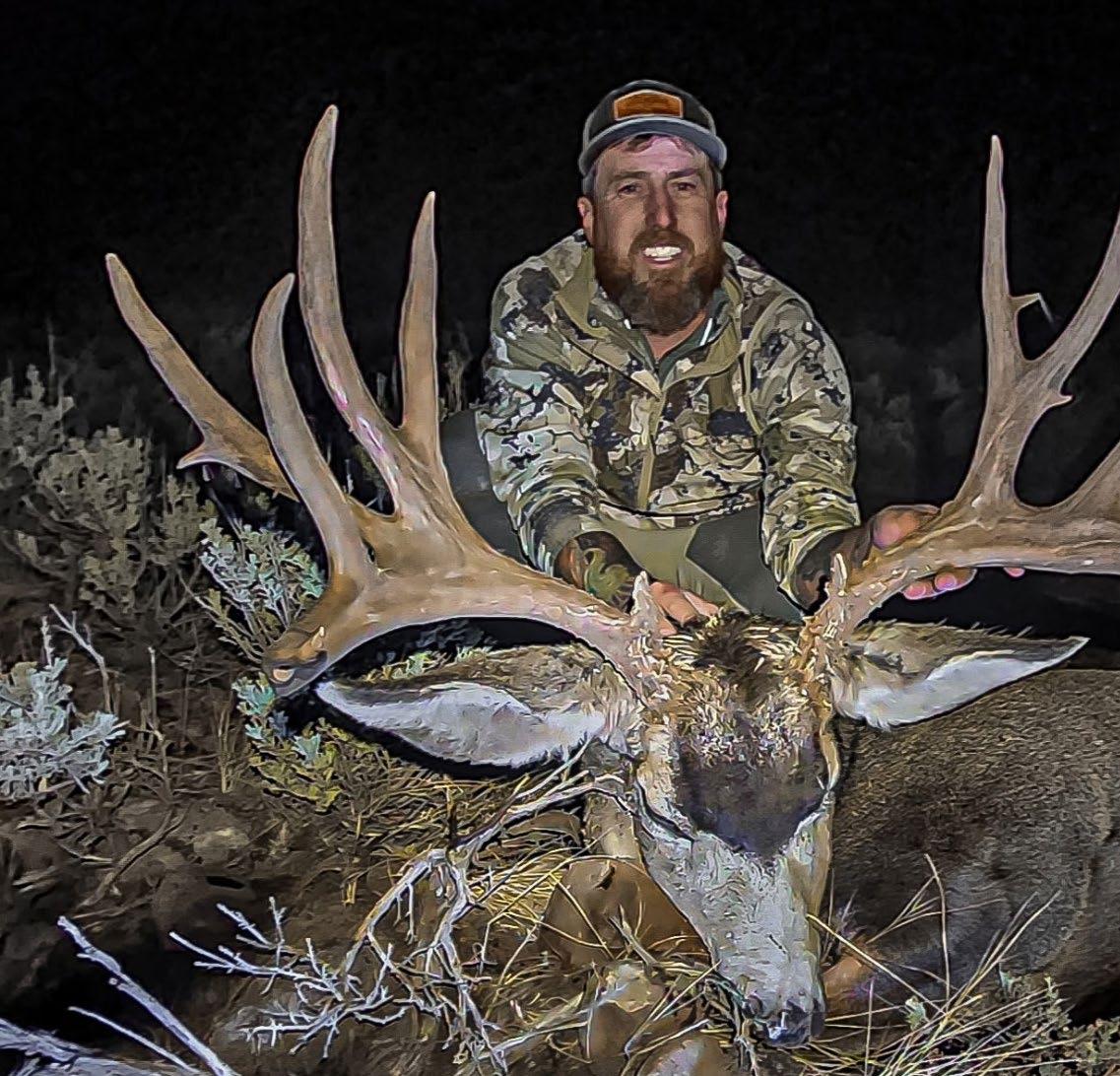 “I spent several days passing on bucks, with only one in mind. Then, on a cold afternoon, I spotted what I thought might be him - over a mile away through the spotting scope. It was time to move in for a closer look. After getting into position, he stepped out of the trees at just 75 yards, and the dream of a 200-plus inch buck became a reality.”