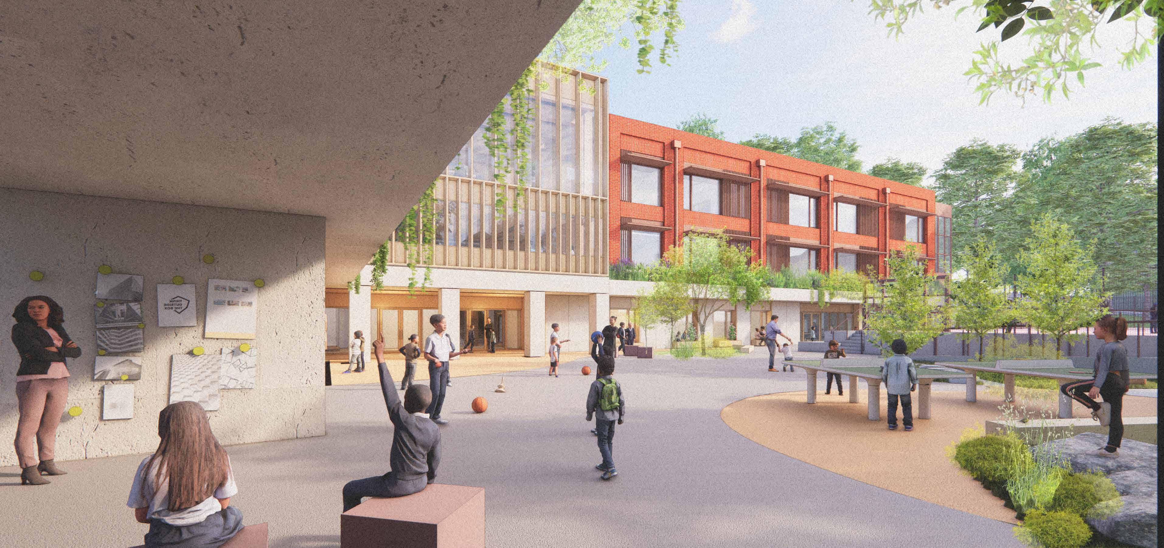 In response to feedback, we’ve updated our design to feature more red brick on street-facing elevations, reflecting the local character of The Downs. Timber will now be used for detailing and screening elements, softening the building’s appearance while maintaining the warm, natural feel originally intended for the junior school.