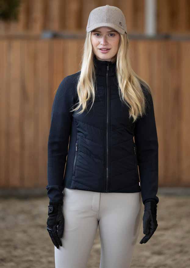 Perfect for riding, working in the stable, or layering on cold days, this hybrid jacket is breathable, quick-drying, and form-fitting. A clean silhouette, tone-in-tone details, and a polished finish make it a versatile layer for active equestrians.