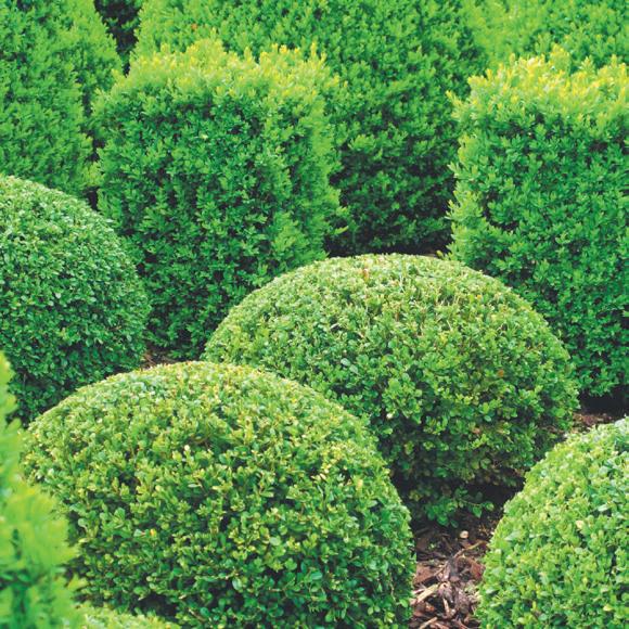 With its glossy, deep-green leaves and slow growth, buxus is a classic choice for formal hedges or borders. Its tolerance for frequent pruning and adaptability to sun or partial shade make it a lowmaintenance favourite. Buxus can be shaped and topiaried, making it a great versatile hedging option. Space plants 20 cm to 30 cm apart for a dense, formal hedge.