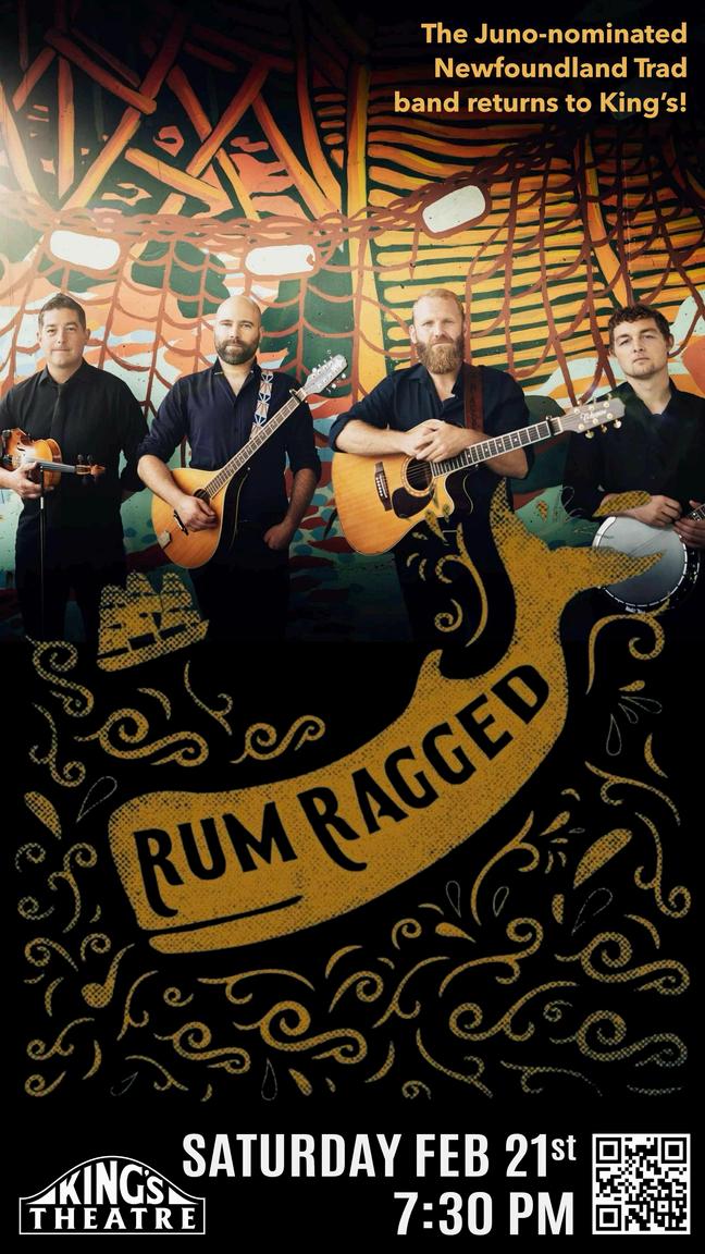 JUNO Award Nominees, Rum Ragged, take a bold approach to the distinct folk music of their home, the Eastern Canadian island of Newfoundland. With a reverence for their roots and a creative, contemporary edge, this young band has quickly become known as the finest performers of their great, living, musical tradition. Boasting bouzouki, fiddle, bodhran, banjo, guitar, and button accordion, these new champions of East Coast music enliven and enlighten audiences with their signature brand of Newfoundland folk. Always honest, thought-provoking, and often humorous, it’s Rum Ragged’s live show that makes them a fast favourite with any audience. Their combination of striking vocal harmonies, staggering musicianship, and captivating storytelling gives concert-goers an experience they won’t soon forget. Since their inception in 2016, Rum Ragged has maintained a rigorous tour schedule, performing at some of the world’s premier folk, celtic and roots venues all while managing to record four acclaimed, award-winning studio albums. Rum Ragged is not your run-of-the-mill folk band, they are the genuine article.