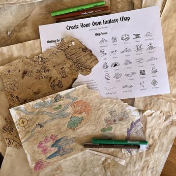 A hands-on, creative world-building class. Take home your one of a kind fantasy map, extra map paper and a full guide to continue world-building at home.