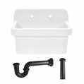 24” Ceramic Single Bowl Wall Mount Kitchen Sink with Strainer White/Matte Black