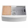 33” Solid Surface Apron-Front Single Bowl Farmhouse Kitchen Sink with 6-Piece Kitchen Accessory Set Glossy White