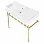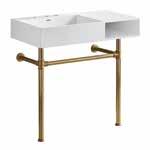 36” Cast Iron Self-Rimming Single Bowl Drop-In Kitchen Sink (4-Hole) with Strainer White/Brushed Brass