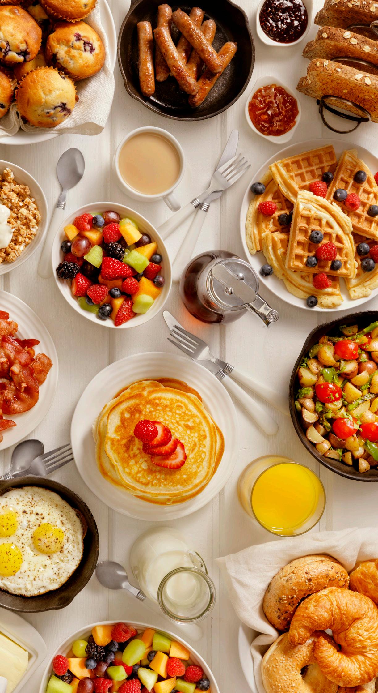 • Belgian Waffle Bar; Chef’s Assorted Toppings, Compotes, Syrups & Whipped Cream