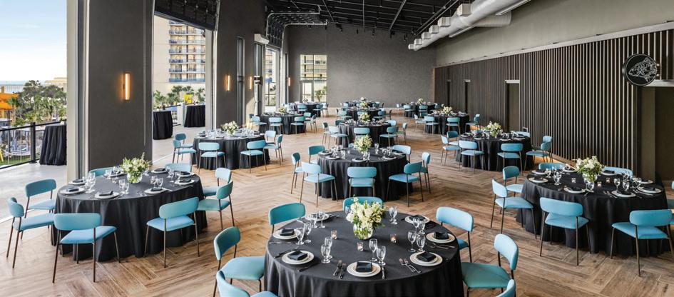 Discover Seaside Vista, a modern ballroom with towering ceilings and retractable 16-foot windows that offer breathtaking ocean vistas and the freedom to let the outside in. Boasting a roomy layout, it’s the perfect venue for a variety of events such as formal dinners, award ceremonies, and relaxed gatherings. The Seaside Promenade terrace is perfect for a reception that overlooks the pool complex with sweeping ocean scenery. Additionally, the Currents Lawn provides versatile outdoor space for a wide range of events.