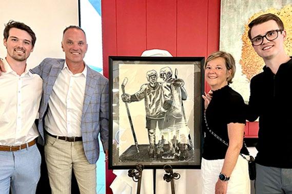 Edward Baker '83 retired as Vice President of the Ontario Hockey League in June 2023 after 35 years. The League established the Ted Baker Teammate of the Year Award in recognition of his years of service. The award will be presented annually at an awards ceremony at the Hockey Hall of Fame. A photo of the rendering of the trophy was unveiled at an event in August, which Ted attended with his wife Joanne (UWO '83) and sons Benjamin and Zachary.