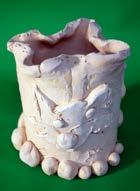 We sawed a round bit of wood, drilled a hole and tied on some string to make a necklace. Henry