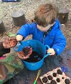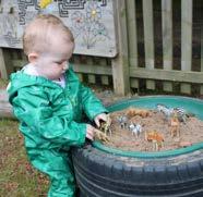 donning their waterproofs and wellies to visit The Secret Garden and yurt. Excursions to the cow field and walks in our beautiful school grounds are also a regular occurrence for the older babies.
