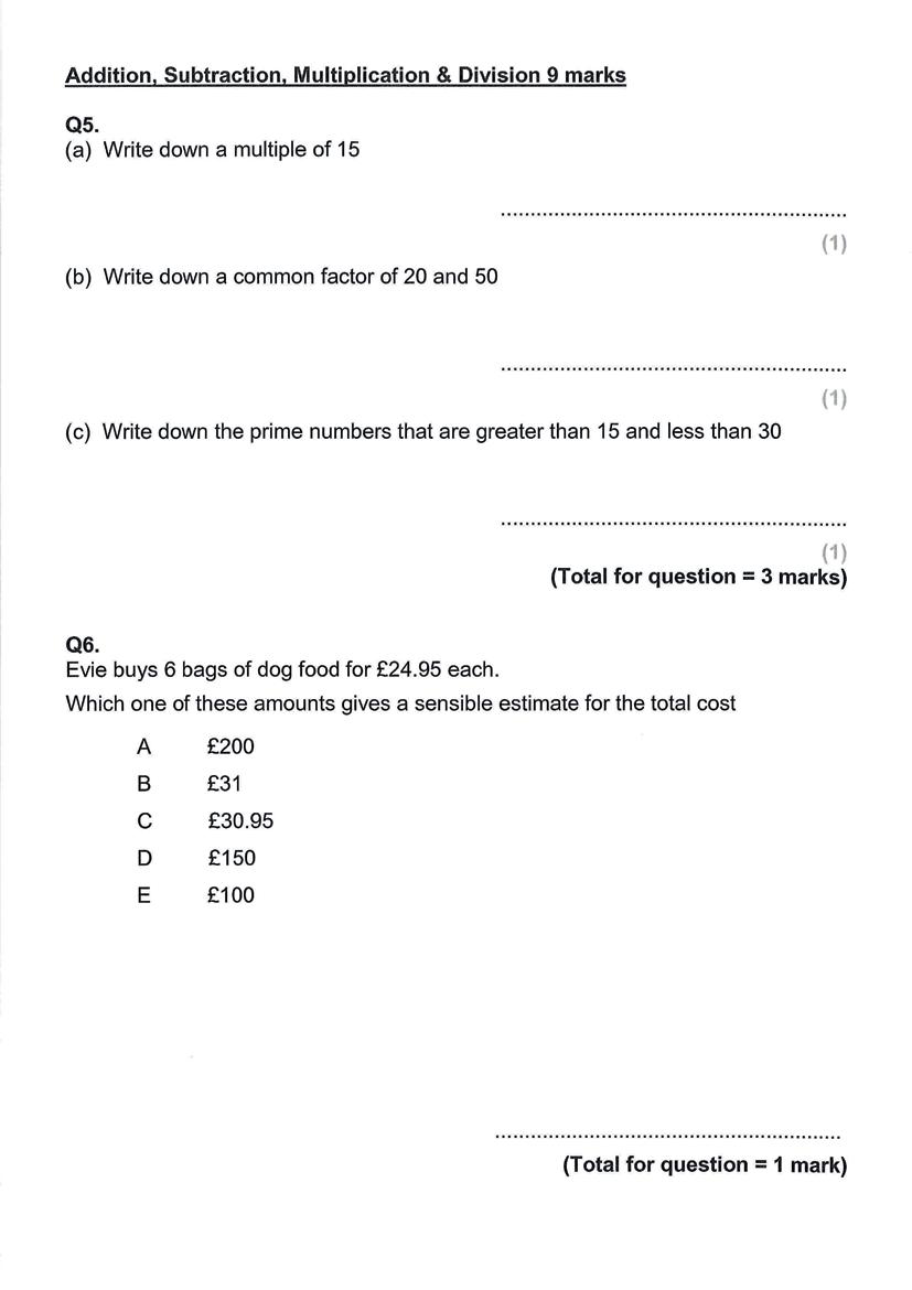 The questions contained in the entrance assessment for Mathematics have been designed to test understanding of the Years 5 and 6 National Curriculum outcomes. There are 84 marks available across the fields of number and place value, the four operations, fractions, ratio and proportion, algebra, measurement, properties of shapes, position and direction and statistics. Students should attempt the questions in any order and not be phased if they cannot answer any specific question, but answer as many as they can as accurately as possible in the time they have.