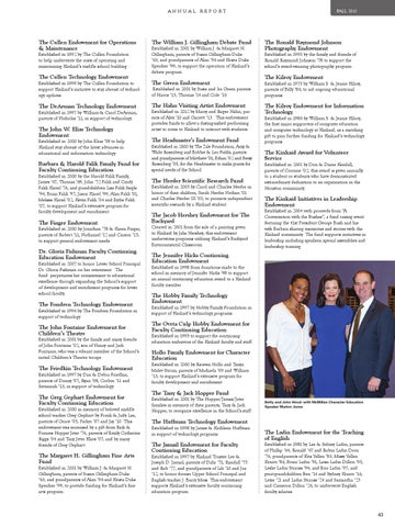 Barbara & Harold Falik Family Fund for Faculty Continuing Education Established in 2000 by the Harold Falik Family, James ‘67, Thomas ‘69, John ‘72 Falik and Cindy Falik Kariel ‘74, and grandchildren Lisa Falik Seigle ‘94, Brian Falik ‘97, Jason Kariel ‘99, Alan Falik ‘01, Melissa Kariel ‘02, Kevin Falik ‘04 and Eydie Falik ‘07, to support Kinkaid’s extensive program for faculty development and enrichment.