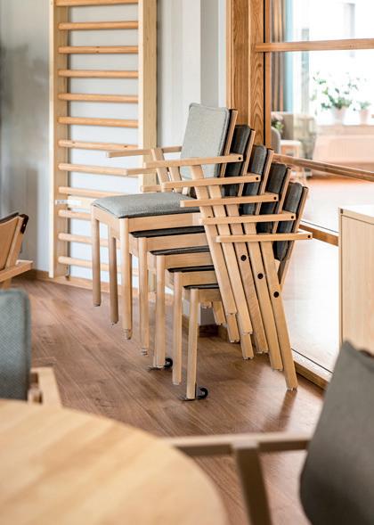 Der Essbereich ist oft das Herzstück der Einrichtung. Hier treffen sich die Menschen mehrmals am Tag, um ihre Mahlzeiten zu genießen und Zeit miteinander zu verbringen. Die Abläufe und Einrichtungsgegenstände sind auf die verschiedenen Menschen abgestimmt, sodass sich hier jeder sicher, respektiert und wohl fühlen kann. Eine zweckdienliche Einrichtung spart dem Personal Zeit und Aufwand, gibt den Bewohner*innen oder Patient*innen ein Gefühl der Unabhängigkeit und den Angehörigen das Gefühl, einbezogen zu werden. Hier fühlt sich niemand ausgeschlossen, unabhängig von Körpergröße, Gesundheit oder Bedürfnissen.