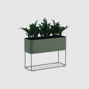 Flexible Pflanzenhalter und Raumtrennungen, die freistehend, in Gruppen oder Reihen angeordnet werden können, um verschiedene Zonen und grüne Oasen zu schaffen.