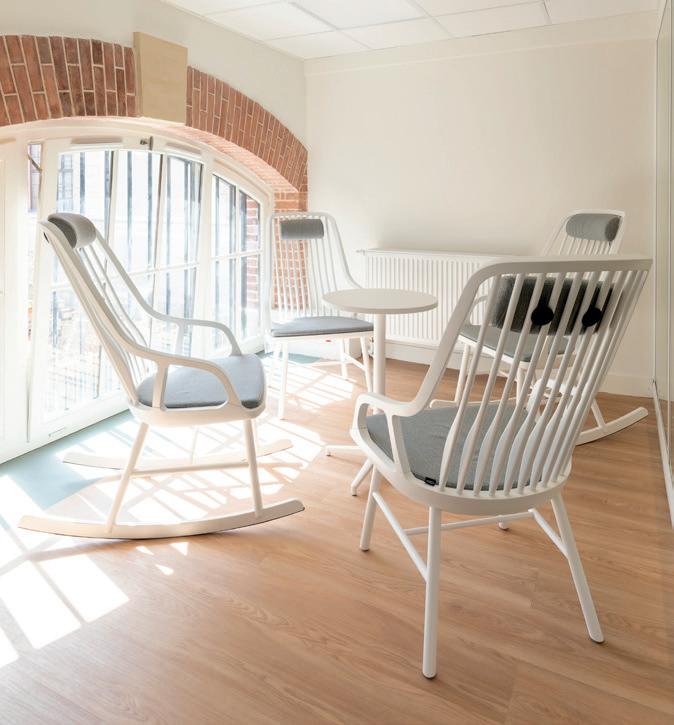 Ein einladender Sessel, der für Räume mit hohen Anforderungen in Bezug auf Komfort, Hygiene und Sicherheit entwickelt wurde.