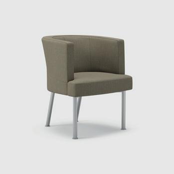 Une gamme d’assises aux formes douces qui créent une ambiance chaleureuse. Le fauteuil épuré est facile à placer et doté d’un tissu amovible sur l’assise et d’un espace entre l’assise et le dossier pour favoriser une bonne hygiène.