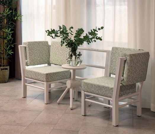 Une gamme d’assises aux formes douces qui créent une ambiance chaleureuse. Le fauteuil est facile à placer et doté d’un tissu amovible ainsi que d’un espace entre l’assise et le dossier pour favoriser une bonne hygiène.