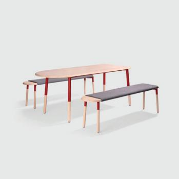 Une gamme d’assises aux formes douces qui créent une ambiance chaleureuse. La table est disponible en trois versions partageant un design commun, ce qui permet une harmonie au sein de l’aménagement.