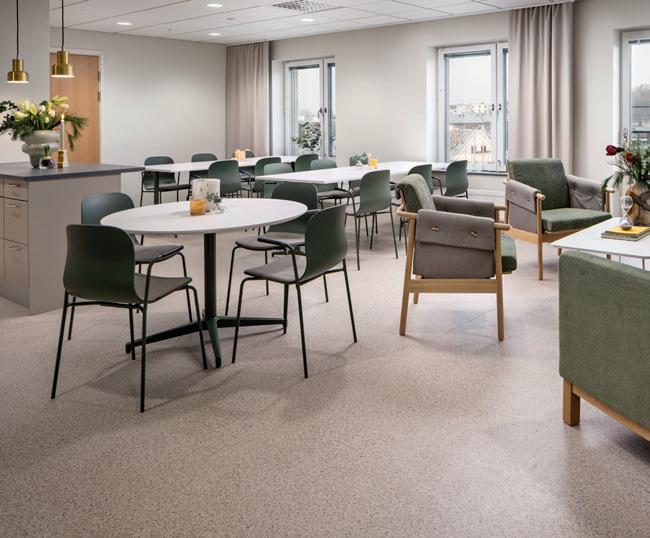 La salle de restauration est en général le cœur de l’établissement. C’est ici que les personnes se réunissent plusieurs fois par jour pour prendre leur repas et échanger. La routine quotidienne et l’aménagement intérieur sont adaptés aux différents utilisateurs et permettent à chacun de se sentir en sécurité, respecté et à l’aise. Une solution d’intérieur offrant un bon soutien permet au personnel de gagner du temps, offre davantage d’autonomie aux patients et permet aux proches de s’impliquer. Dans cet espace, tout le monde doit se sentir inclus, peu importe sa taille, son état de santé ou ses besoins.