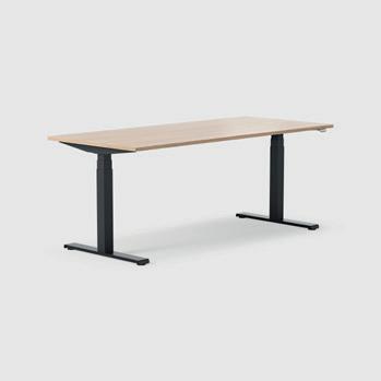 Un bureau réglable en hauteur et stable qui offre une ergonomie optimale. Disponible dans différents matériaux tels que le placage frêne teinté.
